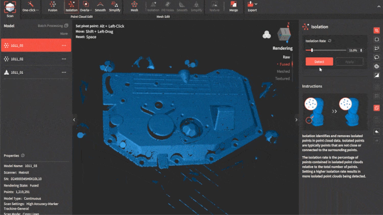 Revo Scanは、使いやすさにこだわったソフトウェアで、新しい機能も頻繁に追加されています。点群の作成から融合、メッシュ化、編集、結合、インポート、エクスポートまで、3Dモデル作成に必要な機能がすべて揃っています。
