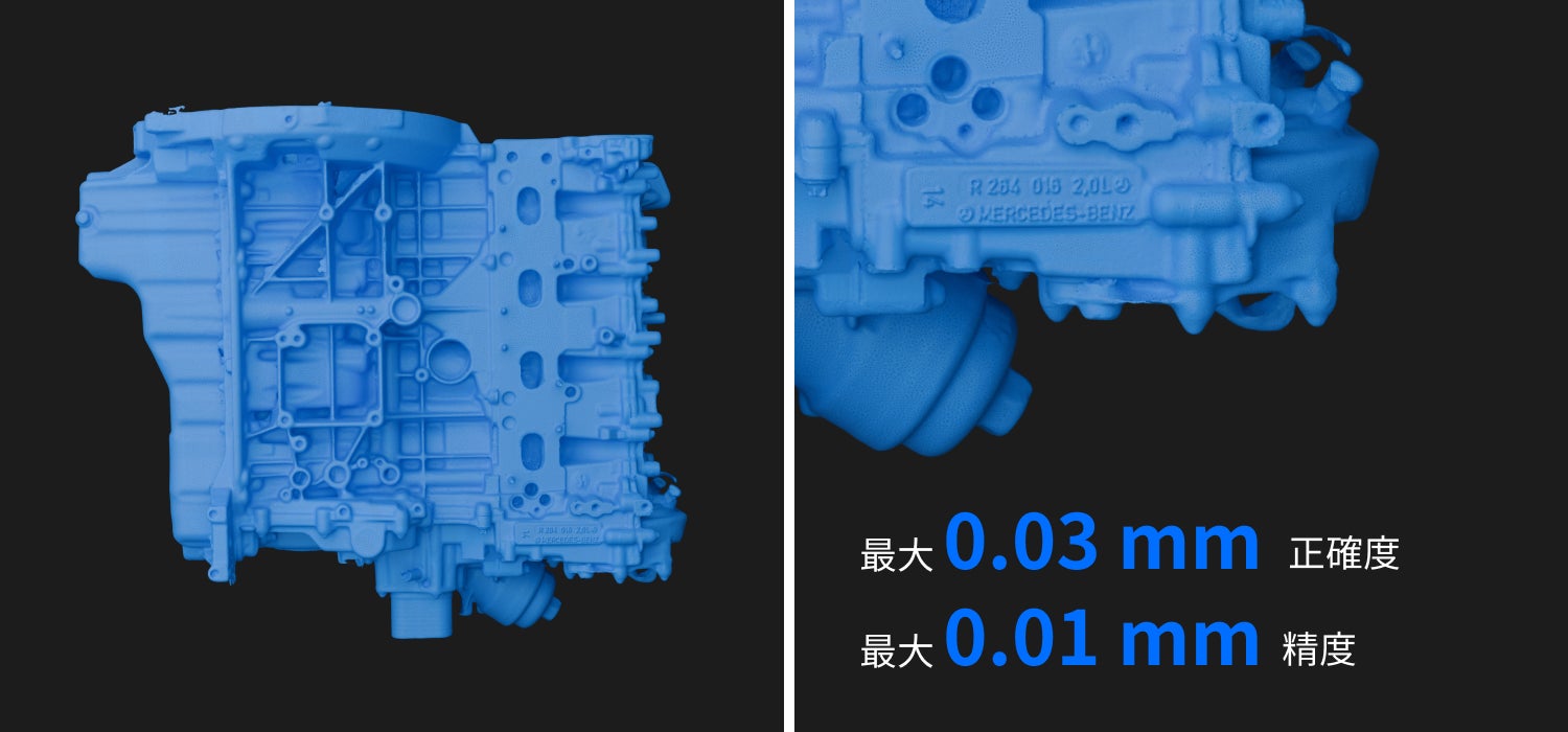 高精度:0.01mmの計測グレード精度と0.03mmの正確度で高精細なデータを生成。