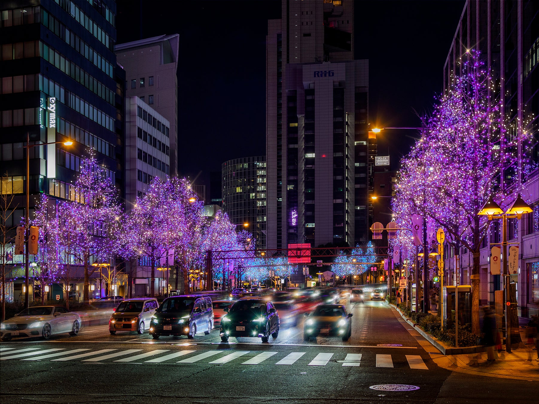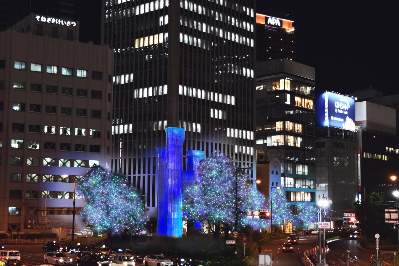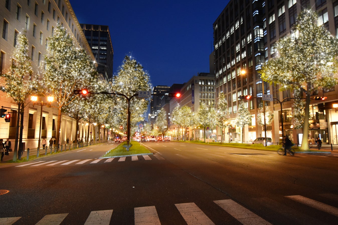 大阪ガスビルディングやホテル日航大阪など、御堂筋の時代を見続けてきたビル群をファーサイドライトアップ。イルミネーションと連動したライトアップカラーで彩られる大阪の街の発展を支えてきた建物にご注目ください。