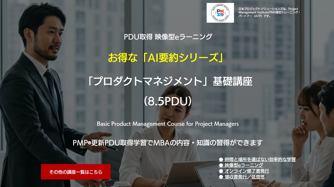 PMP資格更新市場において学習効率とコスト最適化のニーズが高まる中、日本最大級のPDU取得対応eラーニングを展開する日本プロジェクトソリューションズ株式会社(東京都中央区、代表取締役社長:伊藤大輔)は、8.5PDU取得可能な新eラーニングコースをリリースいたしました。