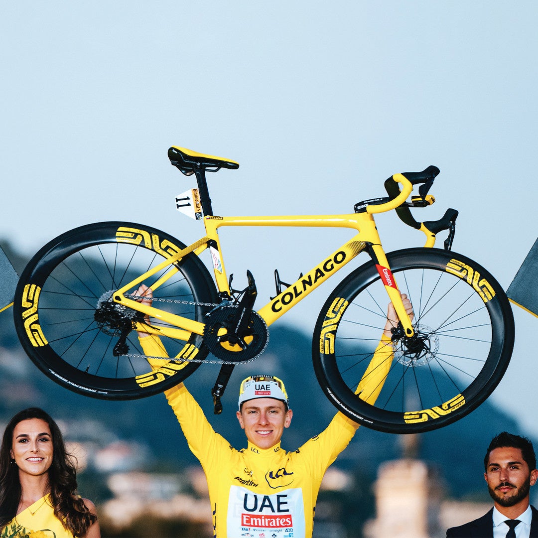 2024年ツール・ド・フランス 区間6勝をマークし、総合優勝を達成したタデイ・ポガチャル(スロベニア、UAEチームエミレーツ)の偉業を記念し、彼がレースで使用するENVEカーボンホイール「SES 4.5」にツール・ド・フランス優勝記念イエロースペシャルデカールモデルが2024年10月1日 日本上陸。