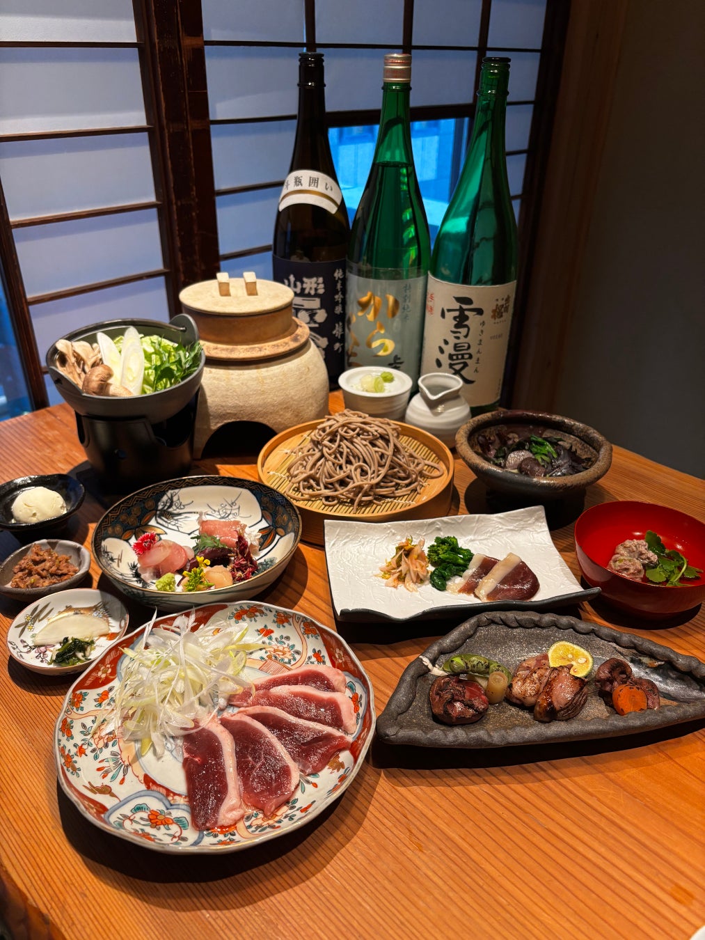 焰藏では、厳選された食材を素材本来の味わいを最大限に表現するコース料理が好評となっており、今回ご用意した「鴨尽くしコース」は、焰藏の象徴ともいえる蕎麦・米と同じ生産地で育てられた最上鴨の魅力を余すことなく堪能していただくために、特別に考案したコースです。最上鴨ならではの深い旨みと上質な味わいを、多彩な調理方法でぜひ心ゆくまでご賞味ください。同じく大蔵村で生産された焰藏の最重要食材である「最上早生」の蕎麦との相性は格別です。「鴨尽くしコース」は事前のご予約なし、当日でもご注文いただけます。