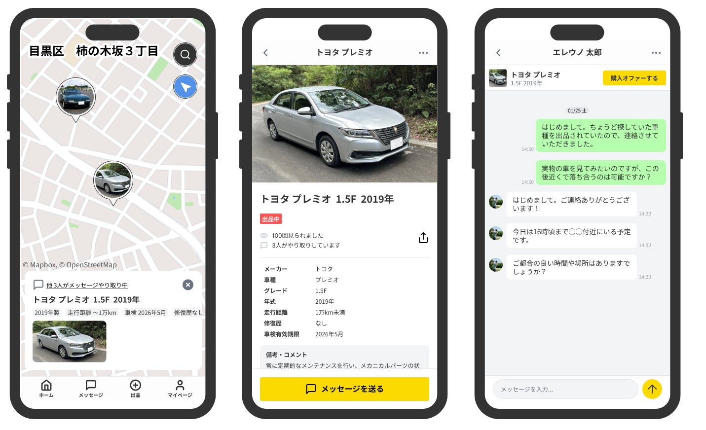 アプリの利用には個人情報の登録が不要で、アプリ内のチャット機能を使って出品者と直接やり取りができます。買い手は気になった車の詳細を電話等を使わず気軽に質問できるようになり、車を出品する事業者もアプリを使うだけでチャット機能の導入が可能となります。