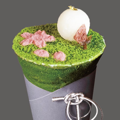上質な静岡県掛川の抹茶を贅沢に使用し、春を感じさせる桜をつかった和クレープ。