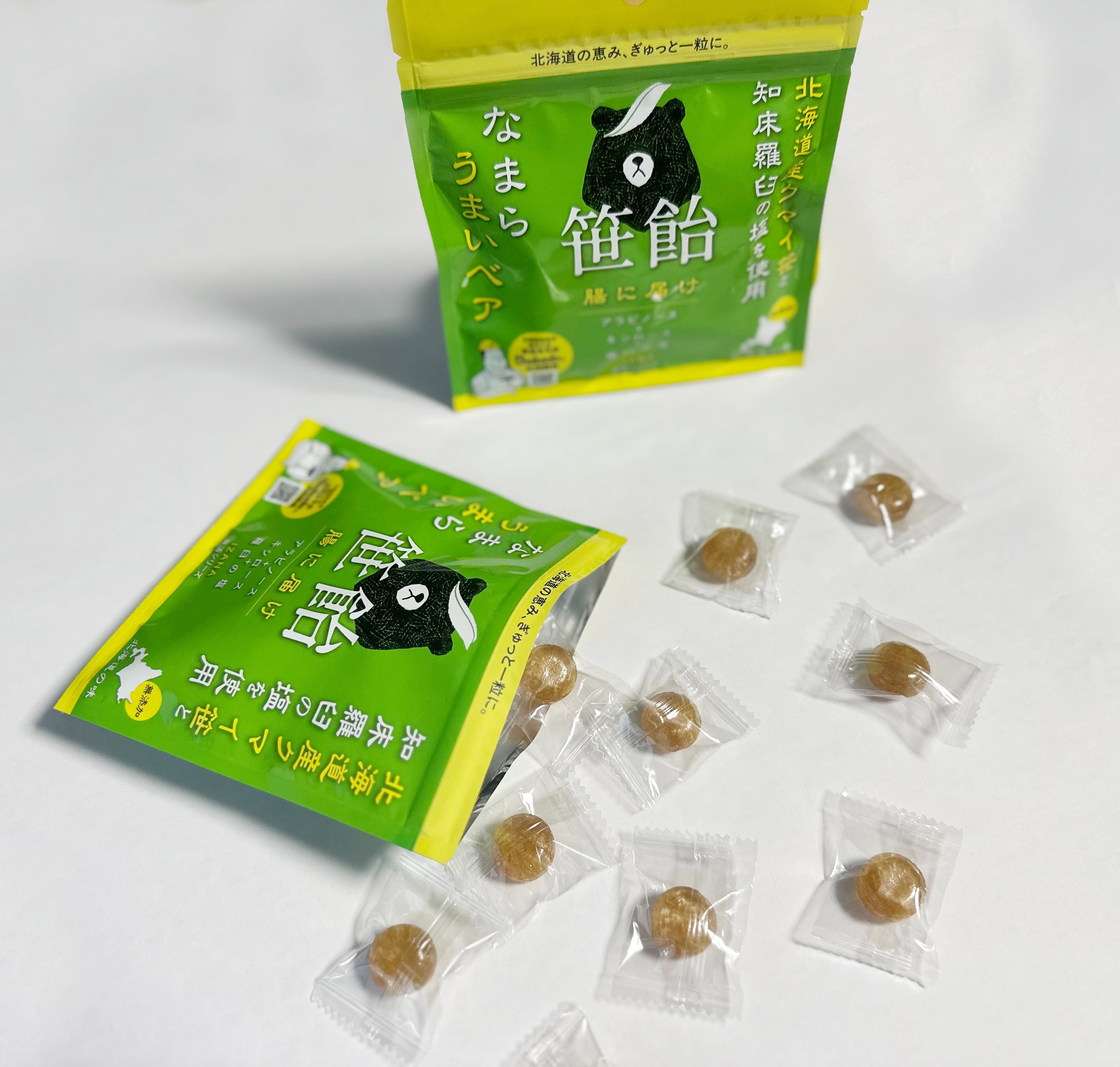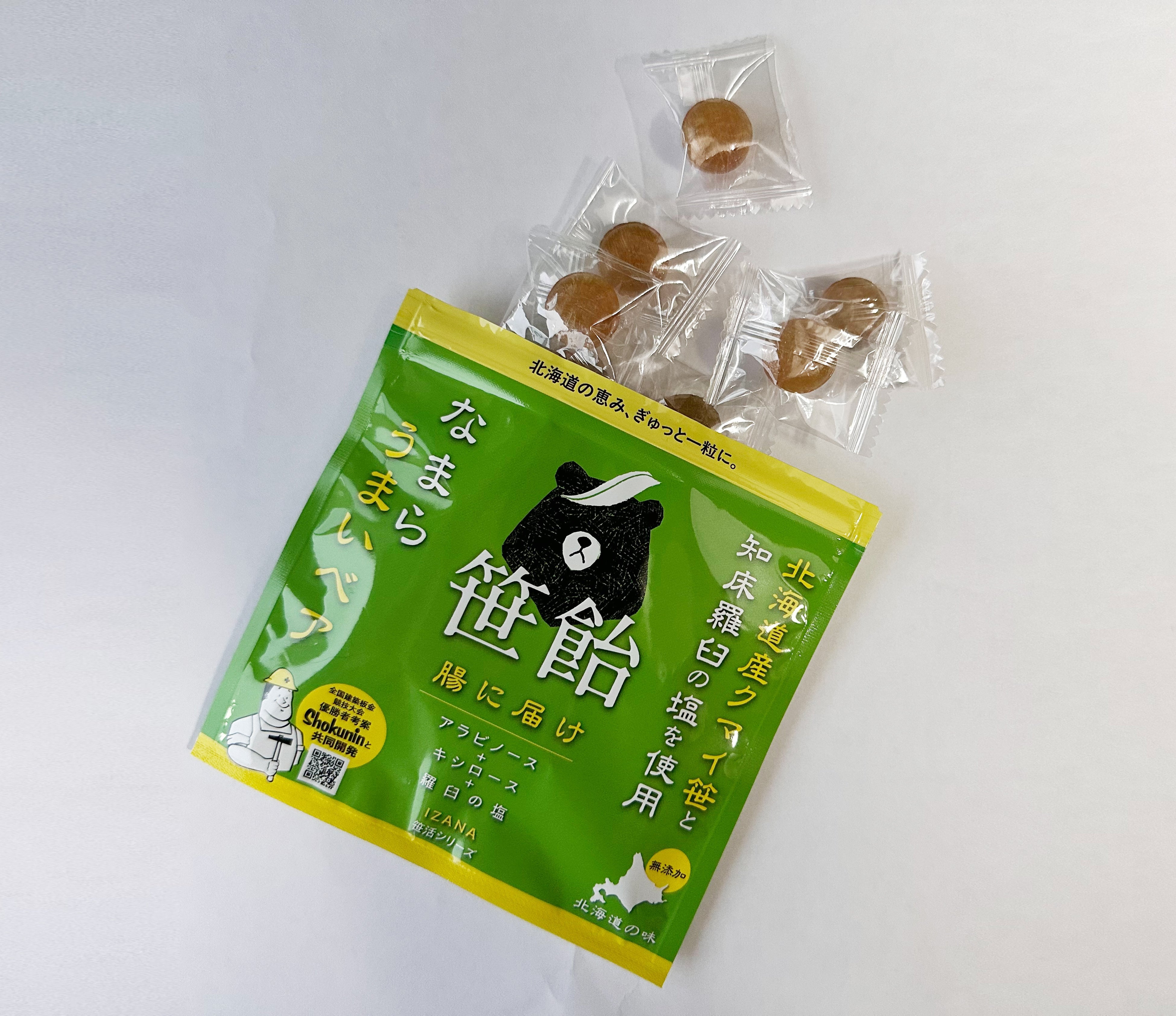 原材料:水飴(国内製造)、砂糖、食塩、クマイ笹エキス(クマイ笹若葉(北海道産))
