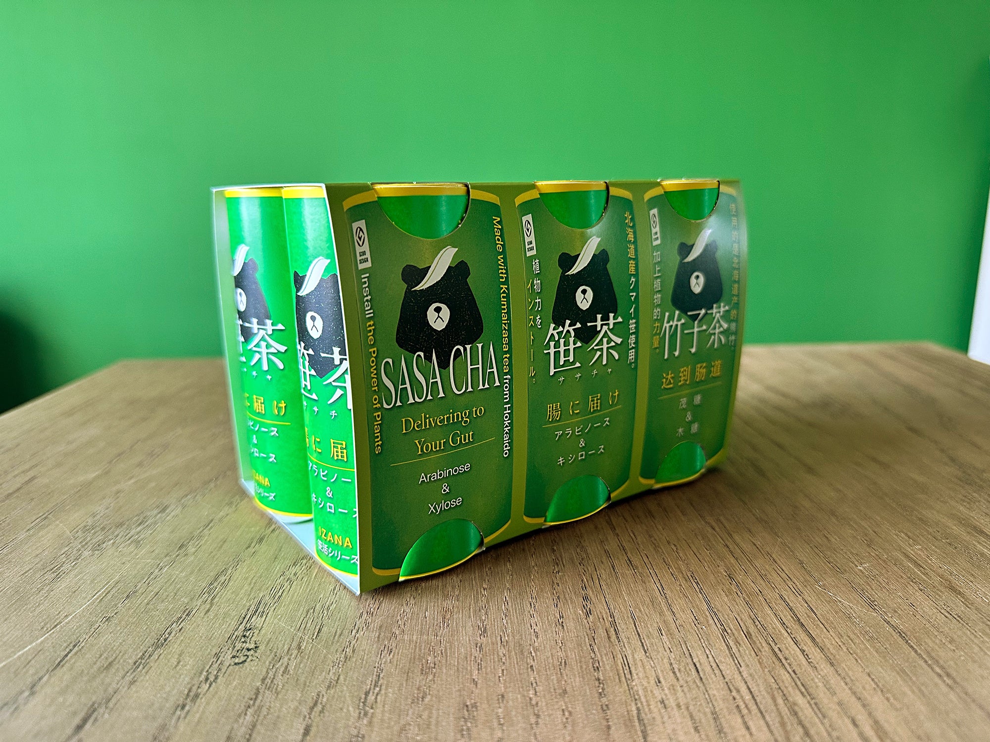 今回も6万本の発注ですが、加速検証により賞味期限がこれまでの倍の2年に。インバウンド需要に対応する多言語化などパッケージを変更、お求めやすい6本パックを追加しての再リリースです。セカンドロットの笹茶(ササチャ)は2025年10月2日より販売開始しています。