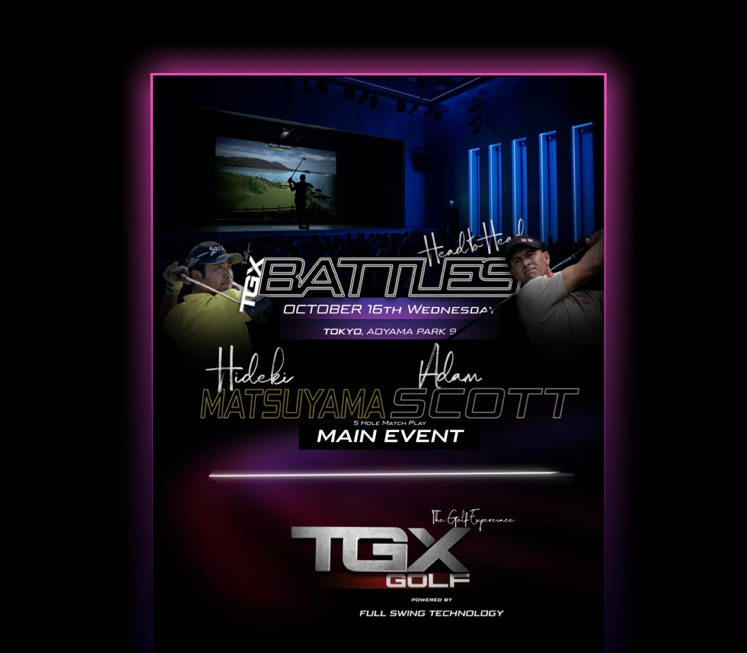 世界のゴルフ界を代表する2人のトッププレーヤー、松山英樹とアダム・スコットが、株主兼戦略アンバサダーとして参画することが決定した新時代のゴルフスタジオ「TGX GOLF」。この革新的なゴルフスタジオのローンチを記念して、松山英樹とアダム・スコット自らが対決する「第1回TGXバトルズ」が開催されます!