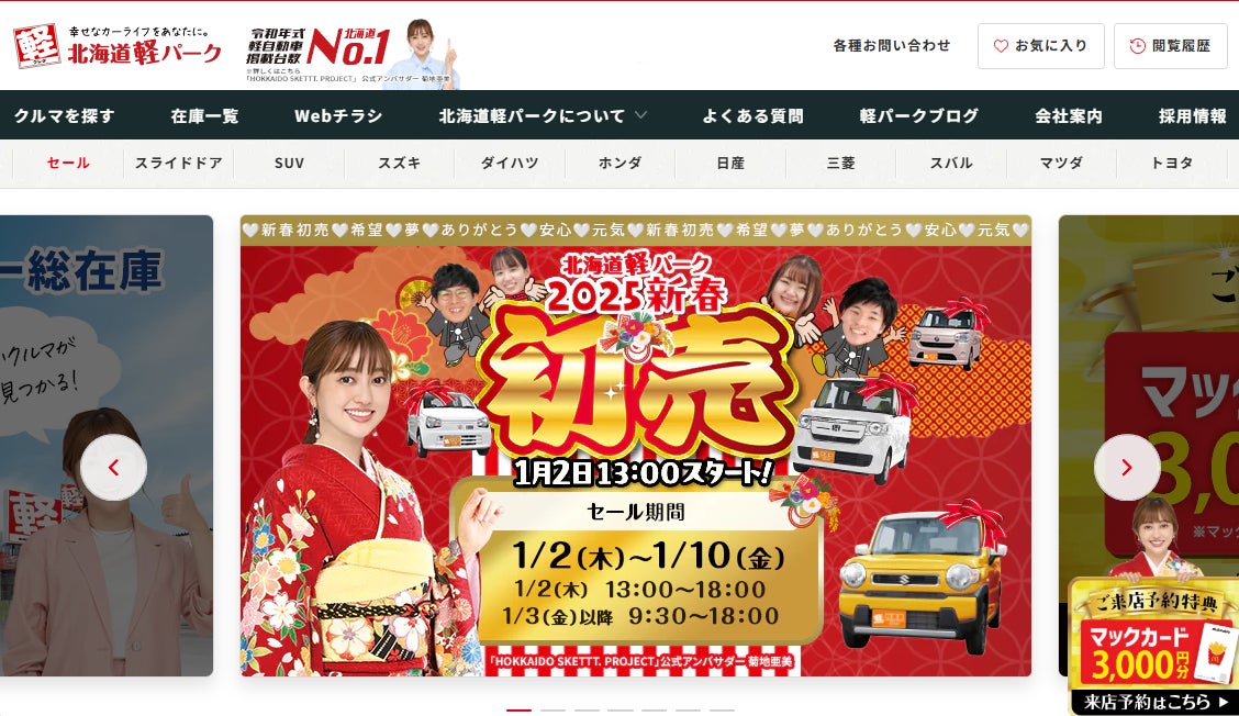軽自動車の販売店「北海道軽パーク」を札幌市2店舗、北広島市1店舗、苫小牧市1店舗で展開しています。メーカーと特約店契約を結んだ正規販売店 (スズキ正規代理店・ダイハツスーパーピット店)であり、届出済未使用車・中古車はもちろん、 新車の販売も行っています。 定期点検や車検、故障や事故の修理対応なども国土交通省から指定認可を受けた自社の工場で対応しています。経営理念は、「暮らしのレベルアップを大切にする」「軽自動車を通して北海道を元気に」。