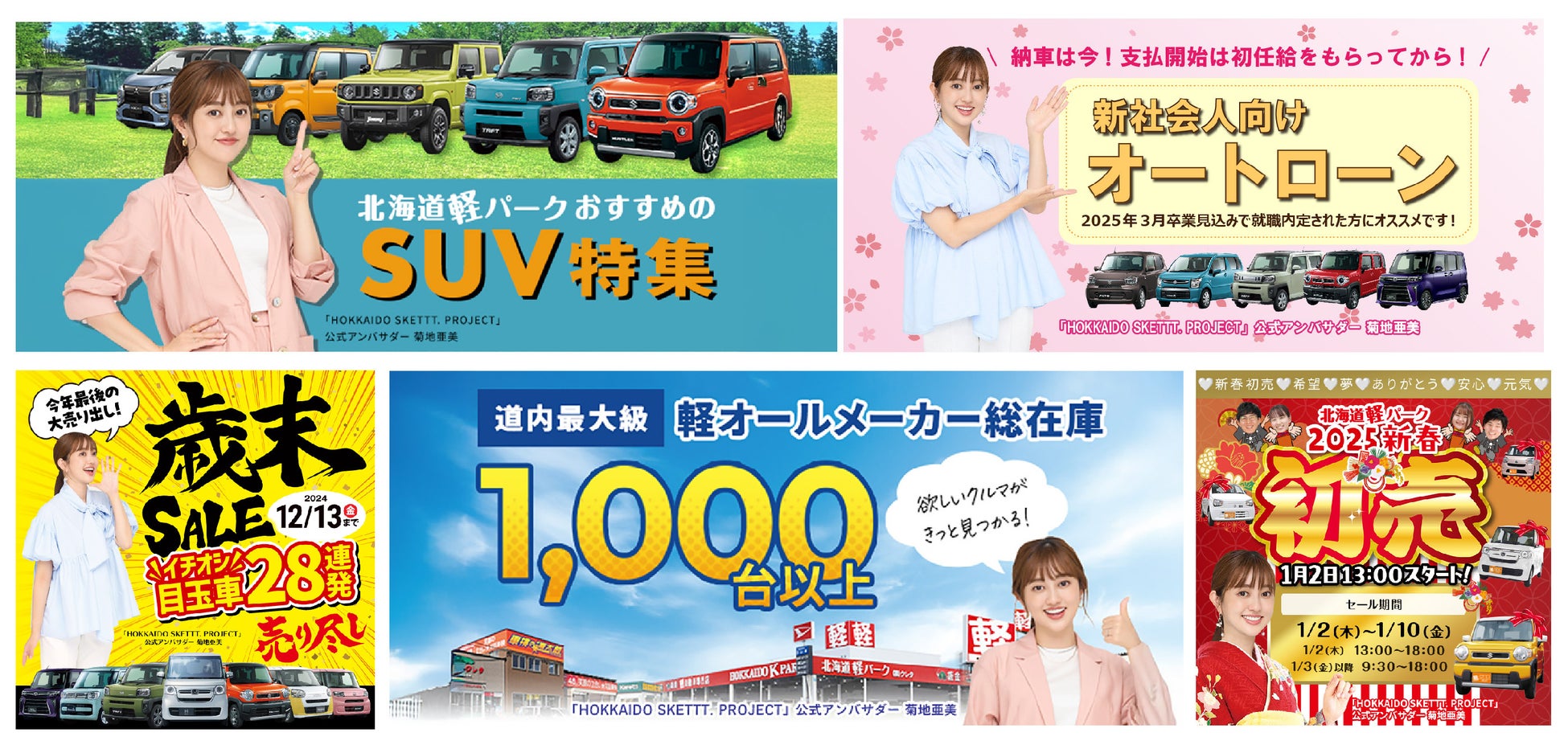 北海道内で軽自動車販売店「北海道軽パーク」を手掛ける株式会社クレタ(本社:北海道苫小牧市、代表取締役社長:石亀 一昭)は、株式会社Wunderbarによる地方出身タレントがPRで地元企業を支援するIPマーケティング包括支援サービス「HOKKAIDO SKETTT. PROJECT」に参加し、12月より菊地亜美さんを広告に起用しました。