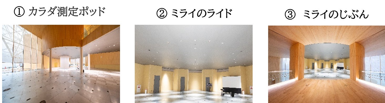 カラダ測定ポッドのデータをもとに生成されたミライのじぶん(アバター)と栄養・身体・心に関する様々なヘルスケアや2050年頃を想定したミライの都市を体験。