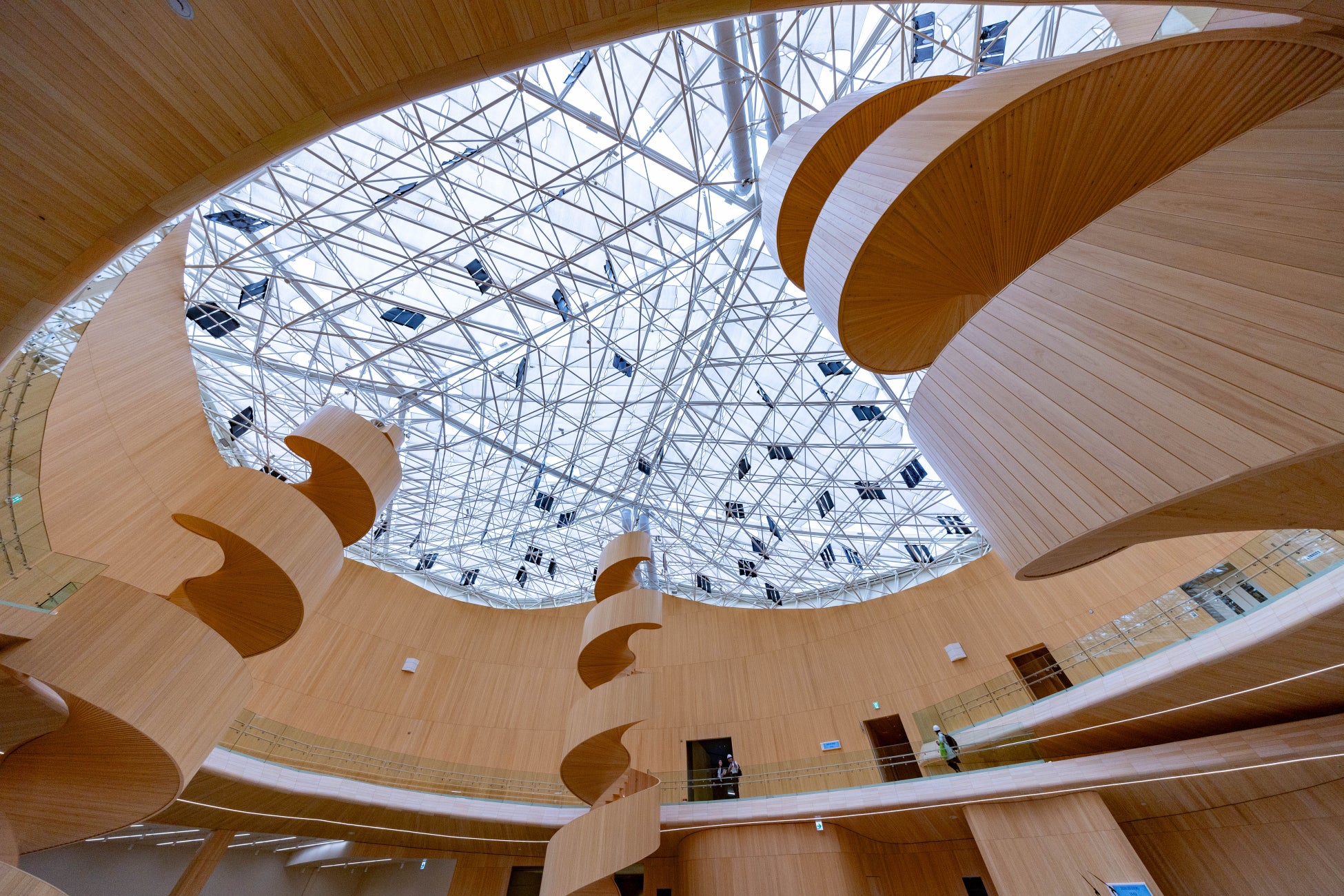 自然光が差し込む開放的な空間。再生医療やミライの人間洗濯機を展示。
