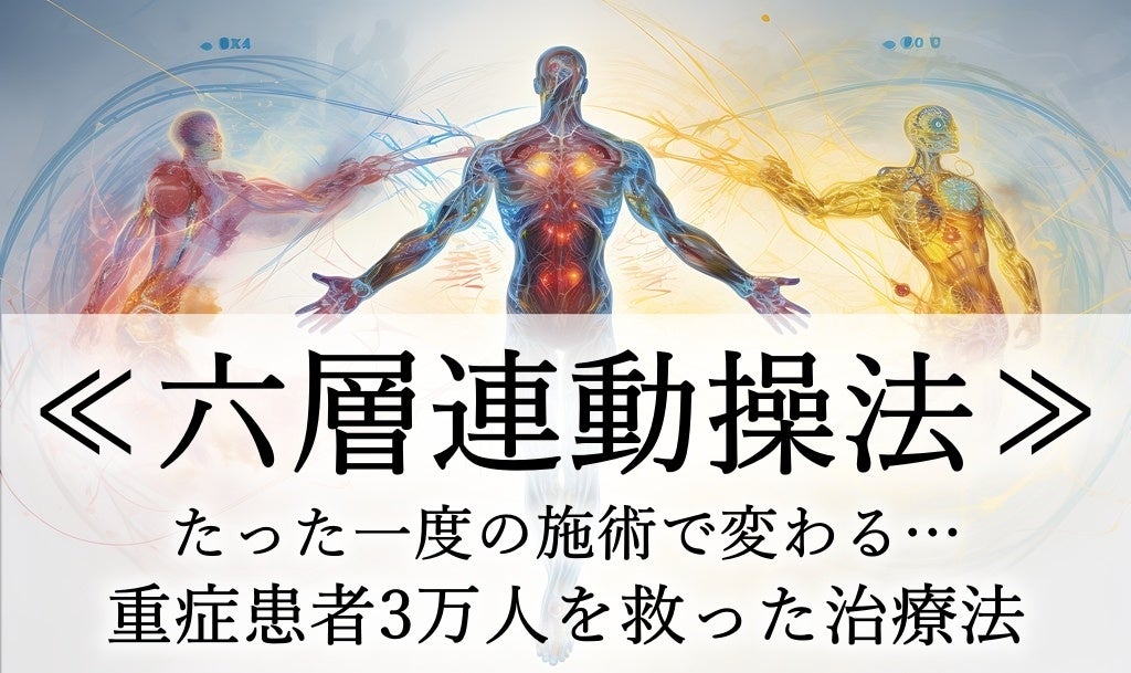 身体の可動域に制限をかけている筋膜の癒着を深部から剝がしとる事で注目を集める六層連動操法とのコラボ、コリの原因(癒着)そのものへのアプローチに加え、食事療法から不調改善のサポートを伝える待望のプロジェクト。