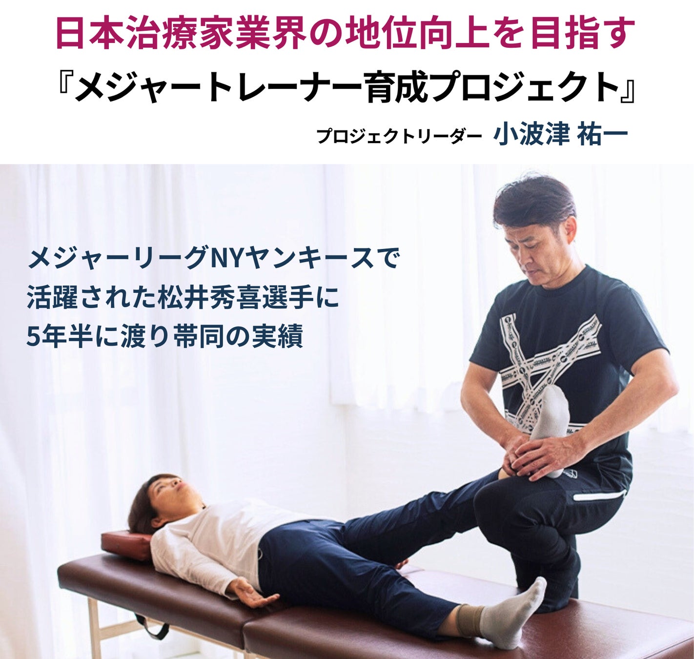 ニューヨーク・ヤンキースで松井秀喜氏に帯同し、日本人治療家として輝かしい功績を残してきた小波津祐一氏が新たなる挑戦を致します。