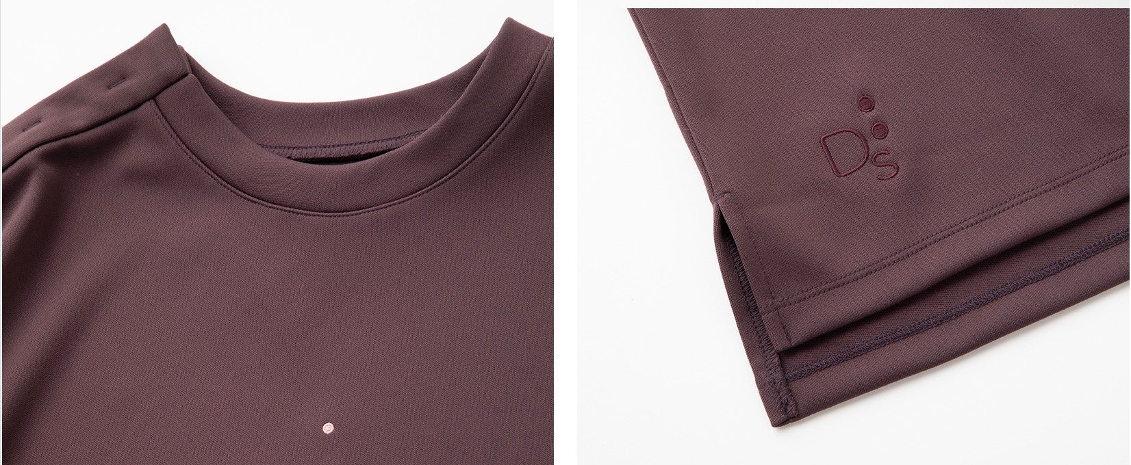 ・うつ伏せになる際、胸が見えないよう首元が少し詰まったクルーネックデザインへ。