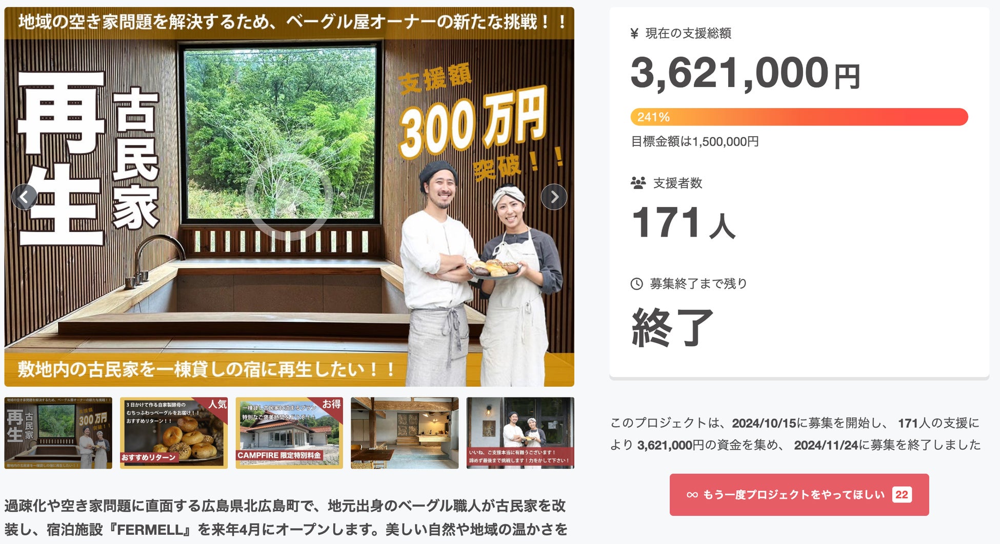 FERMELLはオープンに先駆け、クラウドファンディングを実施し、多くの支援を受けました。