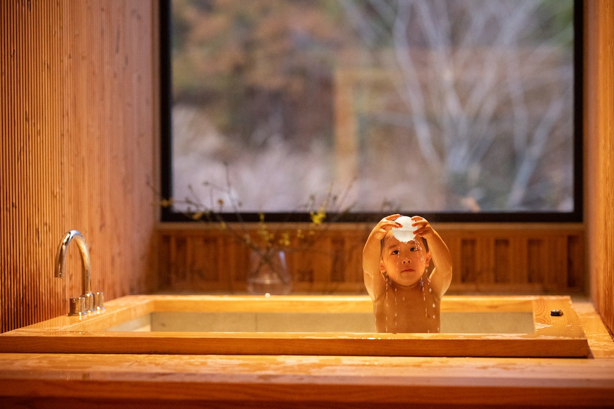 部屋との境界を感じさせない設計で、心まで解き 放たれるような空間。家族みんなでゆったり浸かれる、贅沢なひとときを。