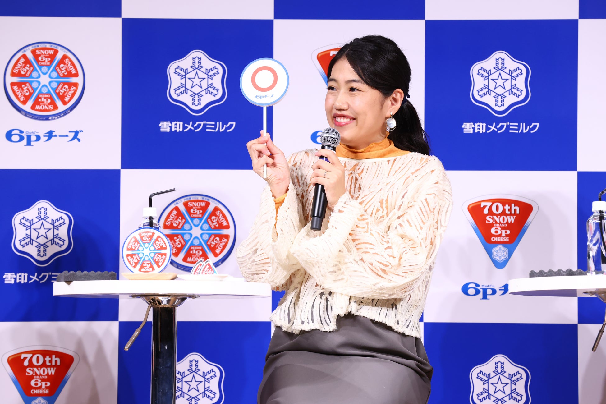 横澤夏子さんは「家でもよくお願いしている」と〇を上げ、見事正解。瀧氏は、「ゲーミフィケーションは、行動を変えるきっかけになります。また、親が楽しそうに何かに取り組んでいる様子を子どもが目にすると、ミラーニューロンシステムが働いて、自分も挑戦してみたい、という気持ちになります。親子で一緒に楽しく、ゲーム化することがポイントです」と説明。あわせて「子どもに何かを配ってもらう役割を与えることは、朝食時間でも取り組みやすいお願いです」と解説しました。横澤さんの「うちでも“カウントダウン”や“早く来れたら勝ち”などゲーム化してお願いをしていますが、つい鬼教官になっちゃっています」とコメントに対し、瀧氏は「ゲーム化だけでなく、親子で一緒に楽しく、子どもが取り組みやすい役割を与えることがポイント」と回答。さらに、「『6Pチーズ』は子どもの手にも持ちやすい大きさで、箱から取り出すのってプレゼントみたいでなんだか特別な感じがしますよね。しかも、子どもって丸い形が好きですよね!」というコメントに対し、瀧氏は「丸い形は心理的な観点からも子どもにとって親しみやすい、丸いものは日常生活でも身近なので興味関心をもちやすい」と解説しました。