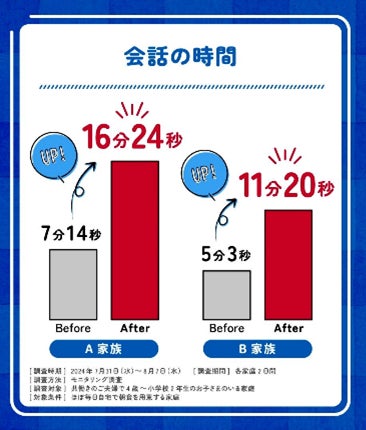 実証実験の結果、実験を行った2つの家庭で約6分以上会話の時間が増加しました。