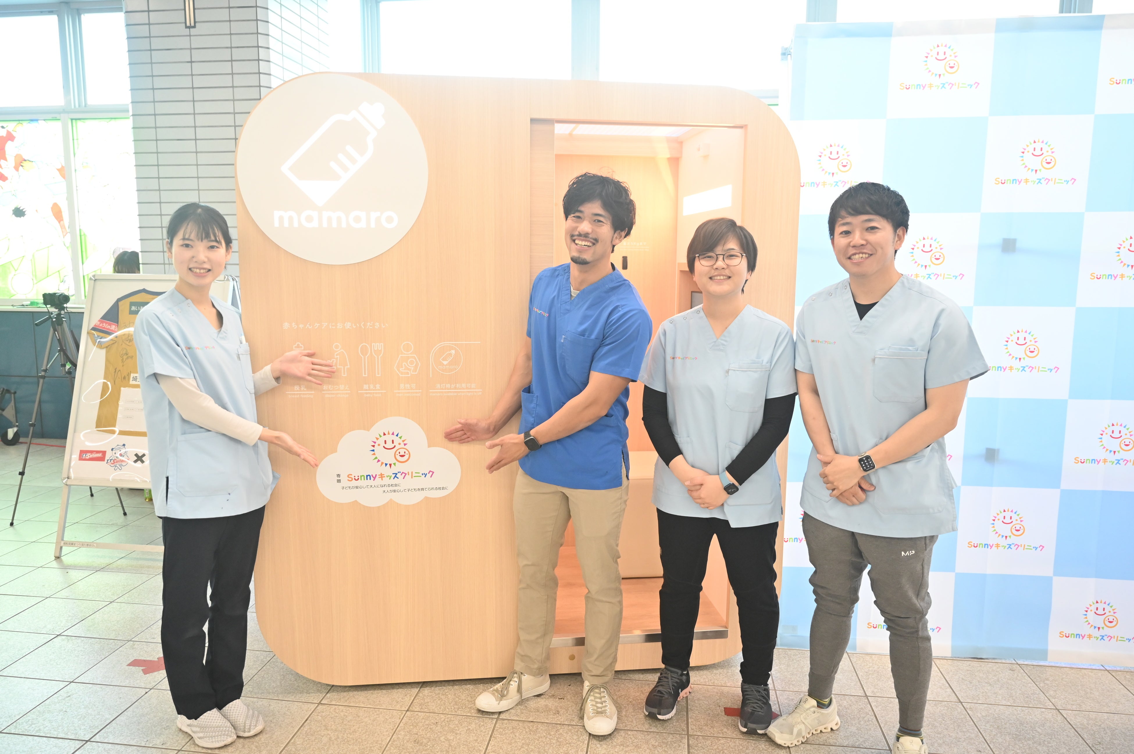 特に、365日診療の提供(年間延べ患者数:4拠点/約14万3,100人)をはじめ、併設の病児保育室を通じてお子さまの一時預かりで子どもの急な体調不良や共働き家庭のニーズに対応する体制を整えてきました。また、医療の提供にとどまらず、日頃から地域の皆様の子育てを包括的にサポートしています。その取り組みの一環として、埼玉高速鉄道の県内7駅すべてに設置されている完全個室のベビーケアルーム「mamaro(ママロ)」の提供に協力しました。これにより、安心して授乳や着替え、おむつ替えができる環境づくりに寄与しています。