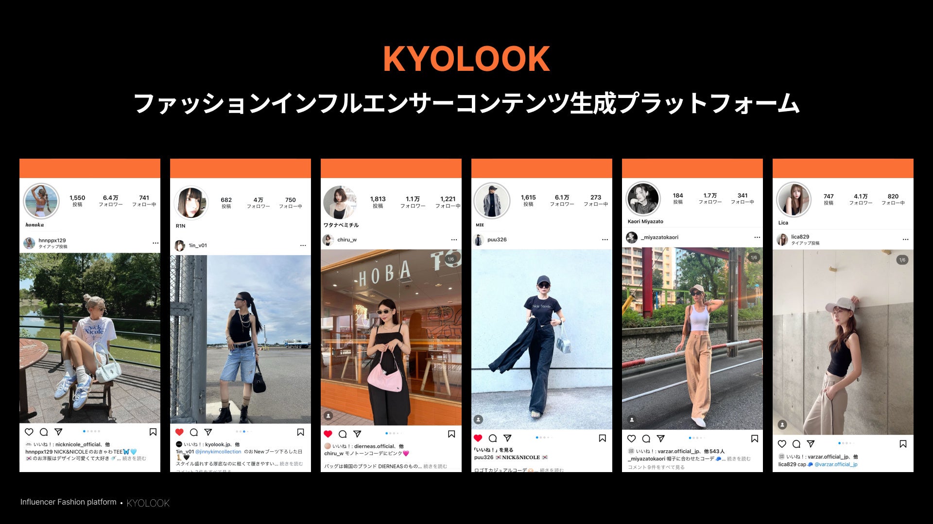 韓国で急成長中の「ONEULOOK」を日本ブランド、日本インフルエンサー向けにサービスを行う目的で、日本では「KYOLOOK」としてローンチいたしました。