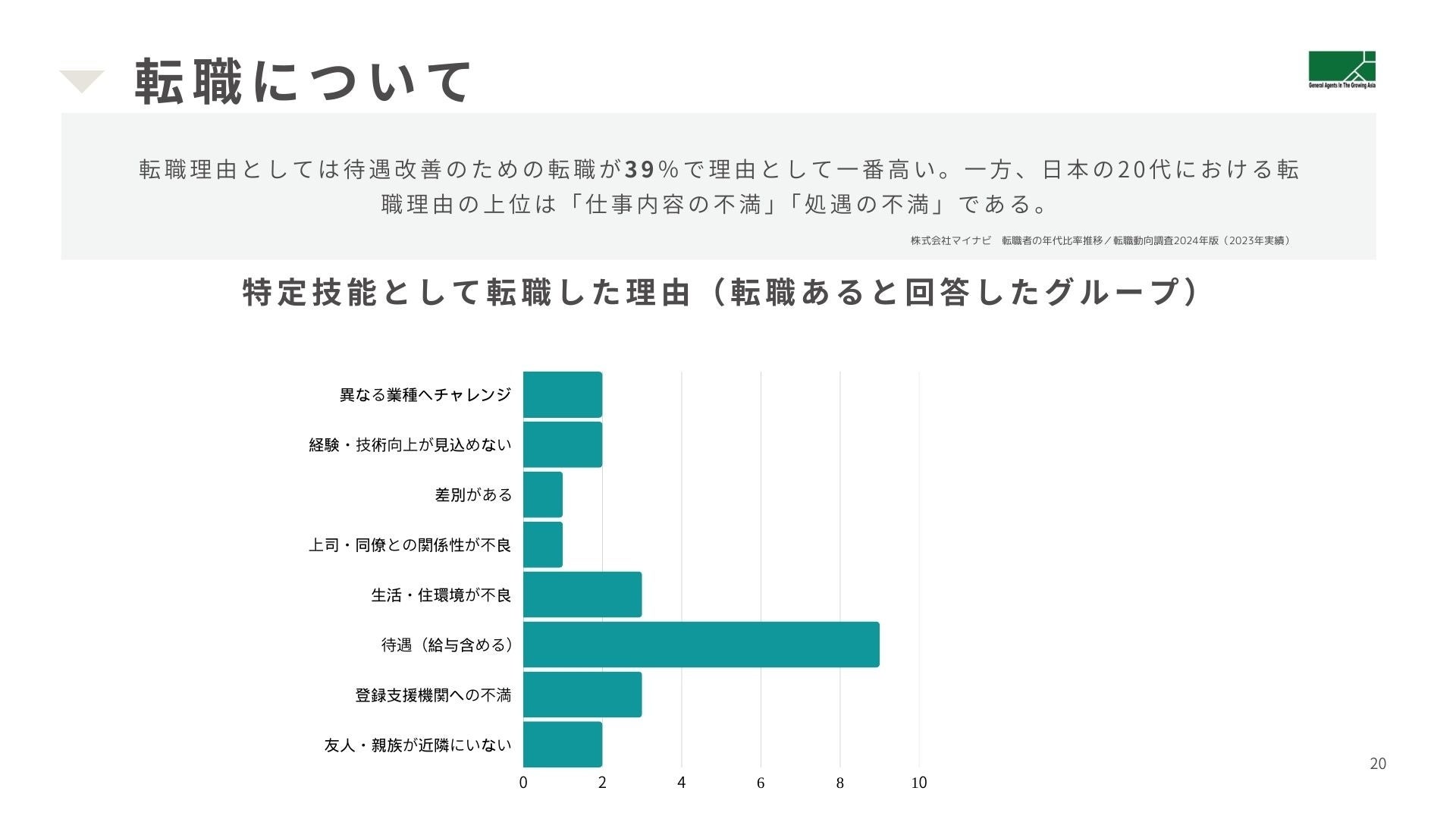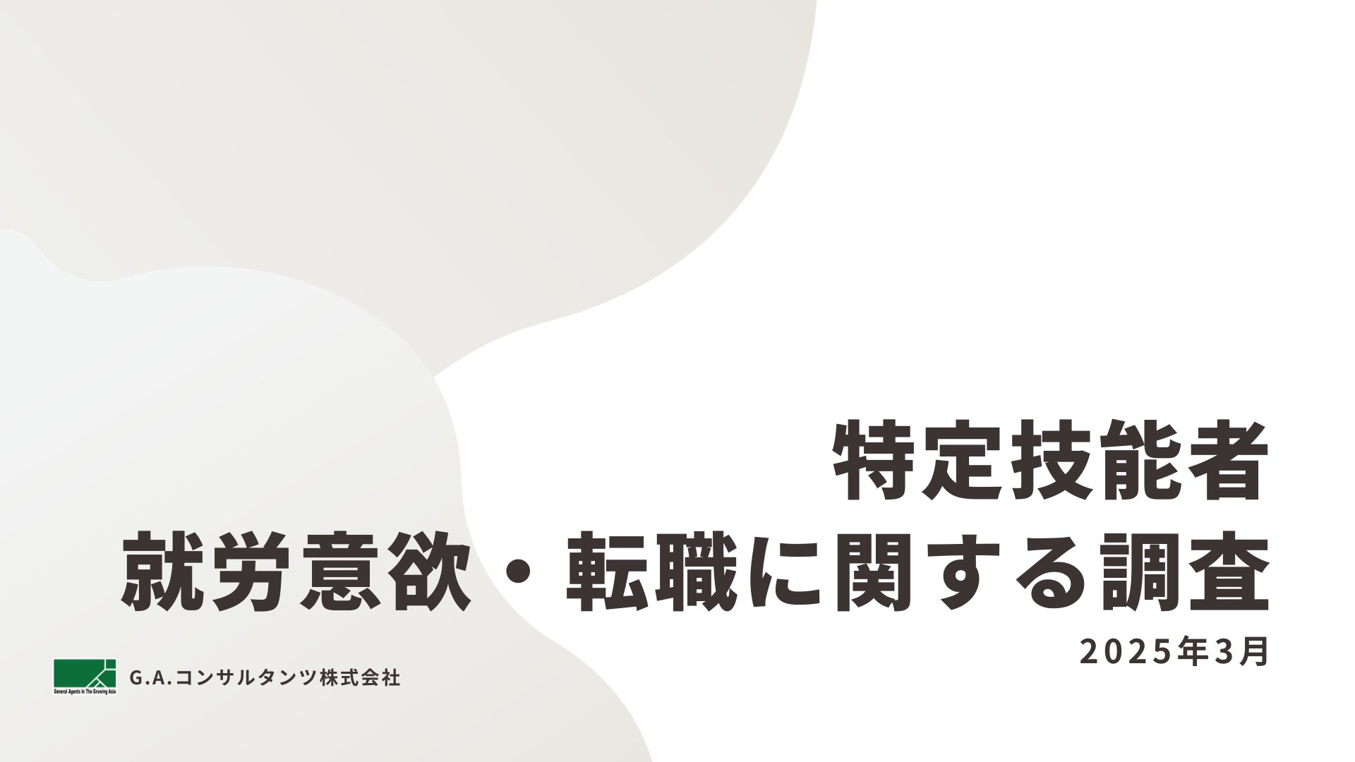 G.A.コンサルタンツ株式会社(本社:東京都新宿区、代表取締役 勝本 健司)は当社が支援する関東エリア在留の特定技能者へ就労意欲・転職の意識に関する調査を行いました。