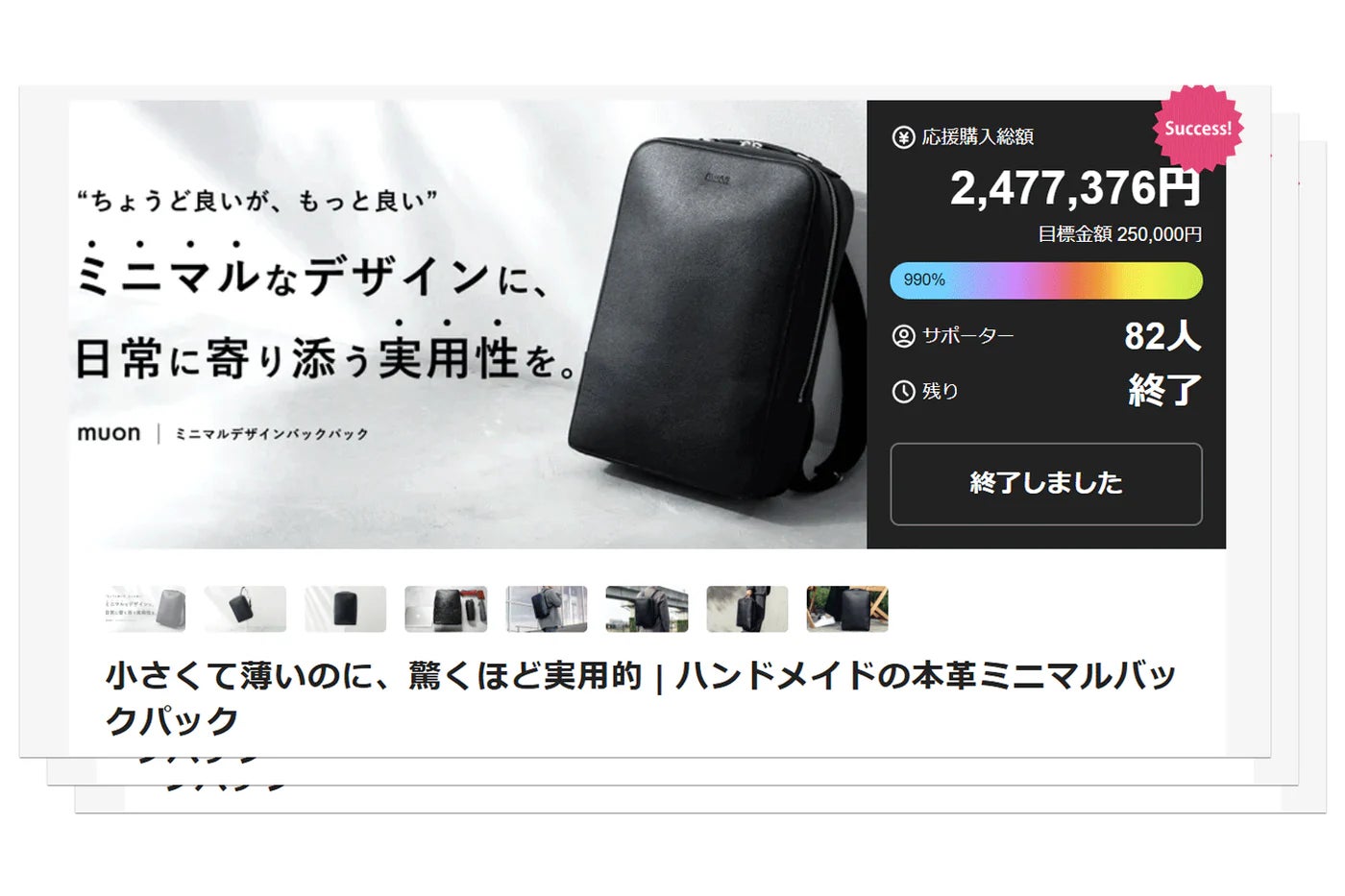目標達成率990%を記録した「ミニマルデザインバックパック」が公式オンラインストアで販売開始