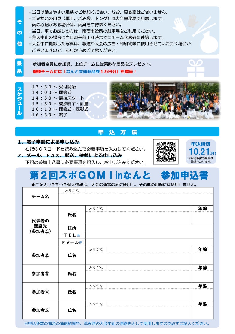 特定非営利活動法人グリーンメーカー(理事長:小西 和孝)(以下、グリーンメーカー)は南砺市環境保健協議会(会長:松本 久介)が主催するごみ拾いイベント「第2回スポGOMI in なんと」に協力し、企画運営のサポートを行う。