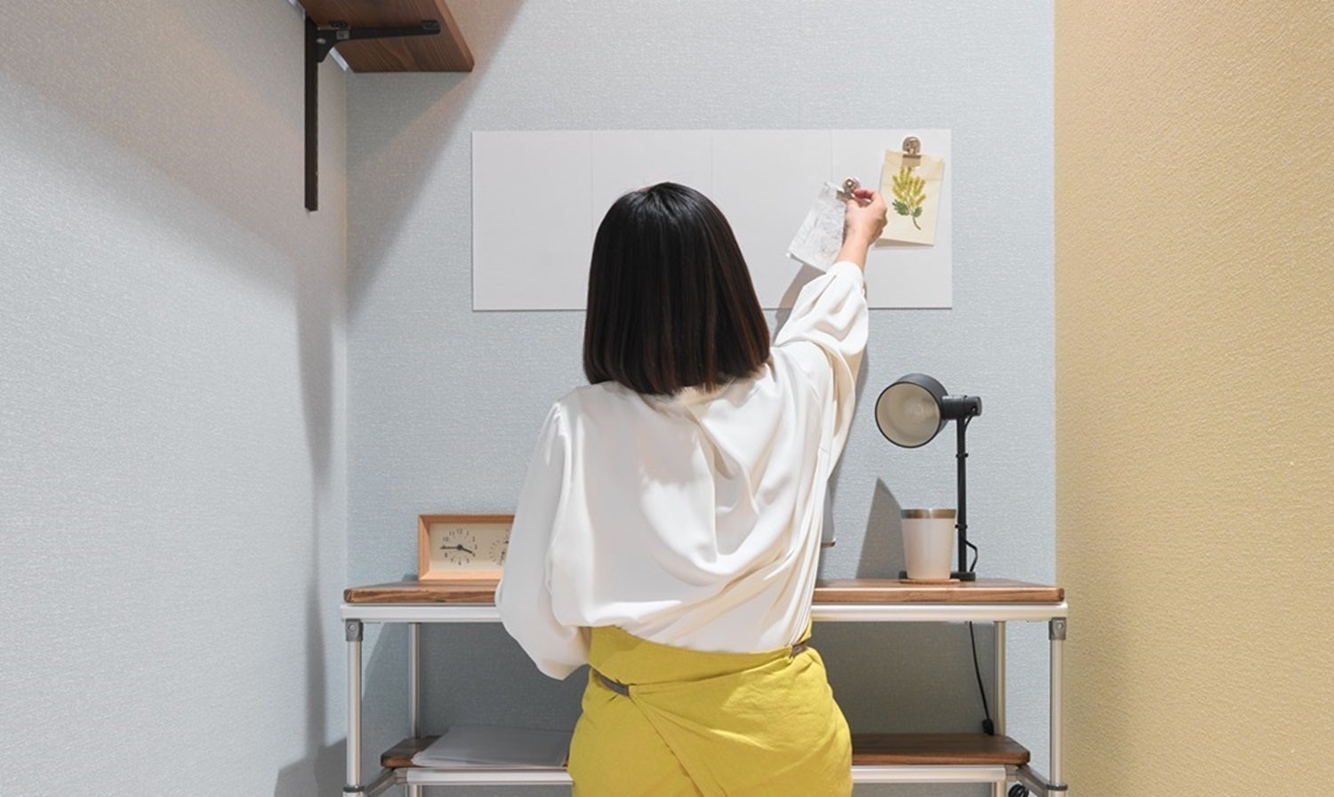 賃貸でも貼って剥がせるマグネットシートを机の壁に貼り付けています。ちょっとしたメモを忘れないように張り付けておくのに便利です。