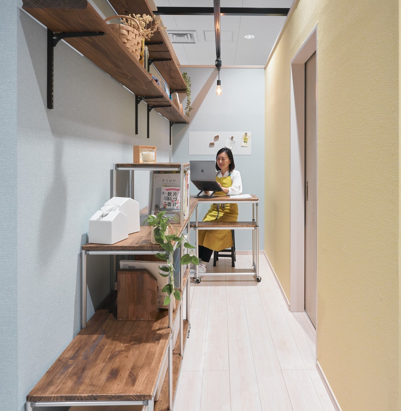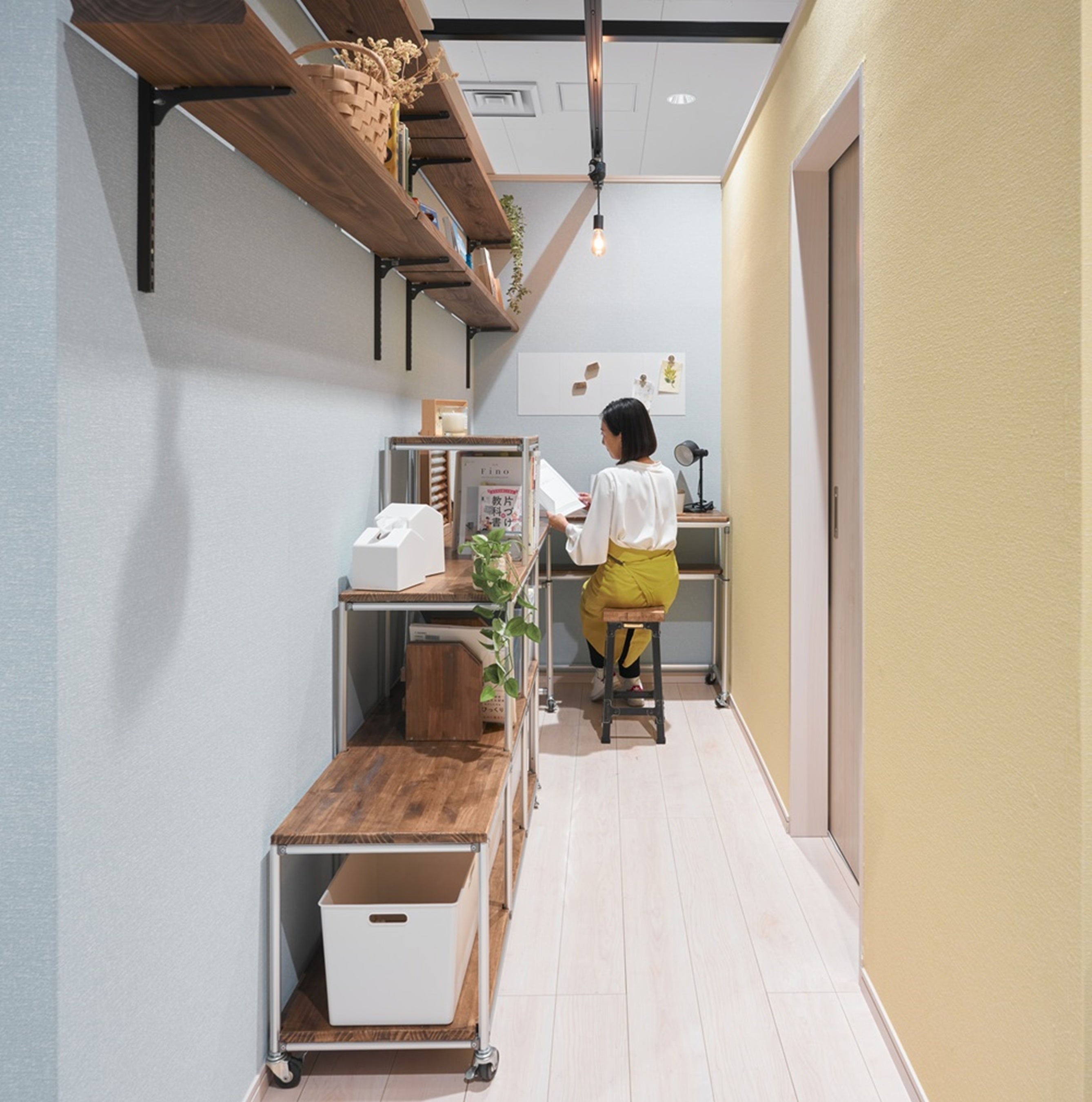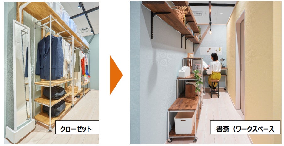 店舗のDIYルームでは、今までクローゼットだった場所を書斎にDIYしています。2畳~3畳ほどのスペースがあれば、DIYでサイズぴったりの家具を設置し、お子さまの成長やライフスタイルが変わるごとに理想の空間に変化させることも可能に。昨今、賃貸住宅の家賃上昇の影響もあり、狭小スペースを有効活用したいというお客さまからの要望も増えています。最初にスペースの活用用途を考え、収納すべきもの(サイズ)を検討したうえで、お部屋づくりをしていただくことをお勧めしています。