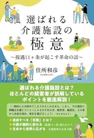 当社の代表 住所和彦は、長年の介護業界経験に基づき、「接遇11ヶ条」という高齢者に対する接遇術を体系化した独自のメソッドを開発し、『選ばれる介護施設の極意』を出版しました。このメソッドは、高齢者の方々とのコミュニケーションにおける基本的な考え方から、具体的な行動までを網羅しており、質の高い介護サービスを提供するための指針として、業界内で注目を集めています。