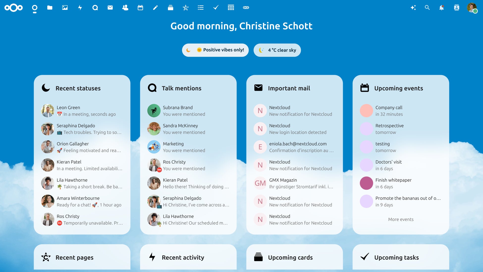 Nextcloudは、単なるファイル共有ツールにとどまらず、コミュニケーションツールやタスク管理、カレンダー機能など、ビジネスに必要な機能を幅広く備えています。特にセキュリティ機能が高く、アクセス権限の厳格な管理やデータの暗号化により、機密情報の漏洩リスクを最小限に抑えることができます。