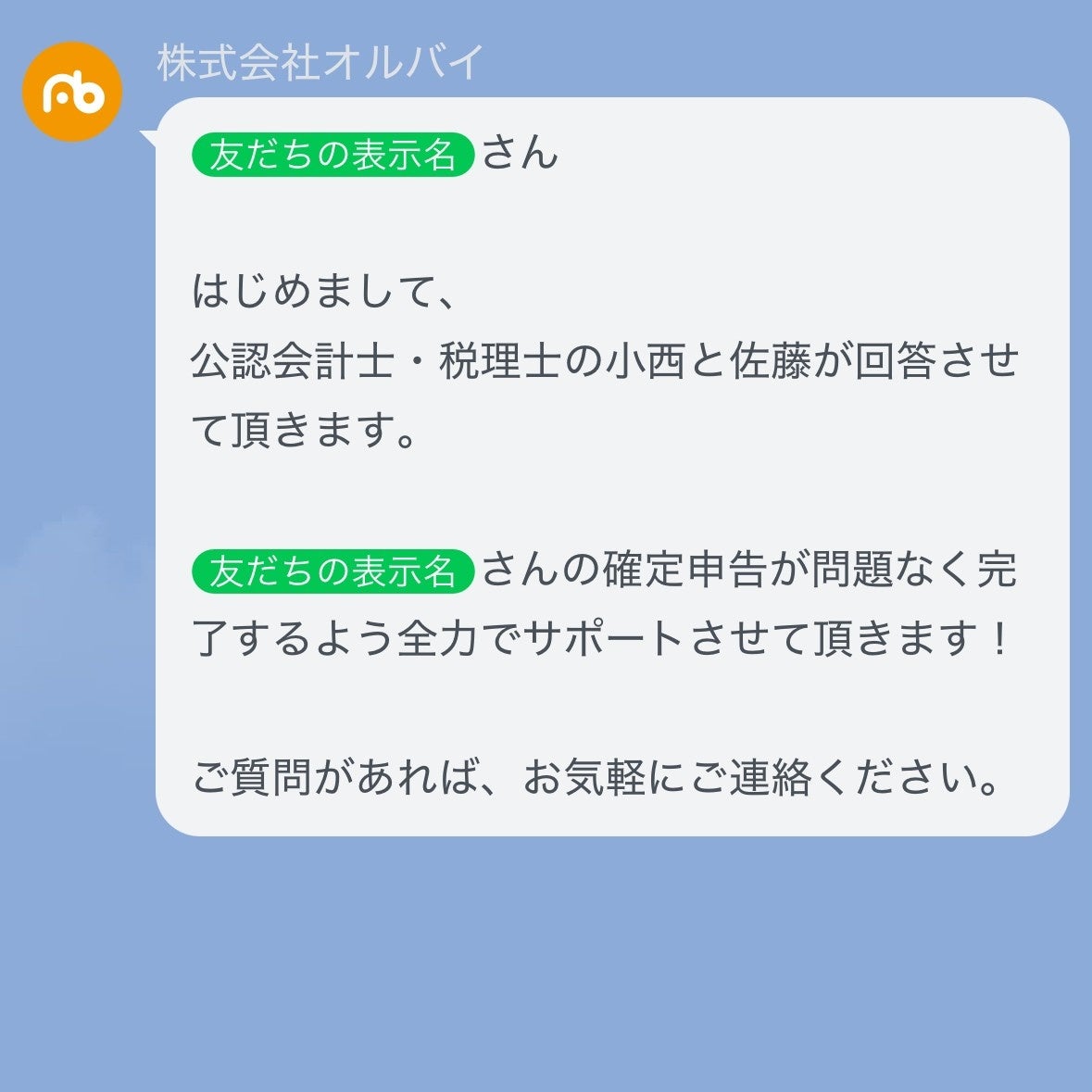 個人事業主・フリーランス向けの確定申告アプリ「オルバイ申告」を開発・運営する株式会社オルバイは、公式LINEを通じた 「無料相談サービス」 を2024年11月より提供しており、現在も継続中です。