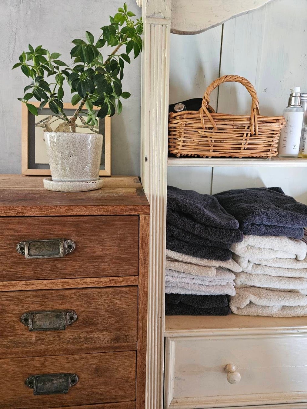 ふわふわな肌ざわりでなく「タオルは一瞬で水分を拭き取ってすぐ乾くものがいい」という店主おちづのこだわりのもと、試作を重ねて開発。従来のタオルでは解決できなかった“乾きづらさ”“臭い”の課題を解消しました。