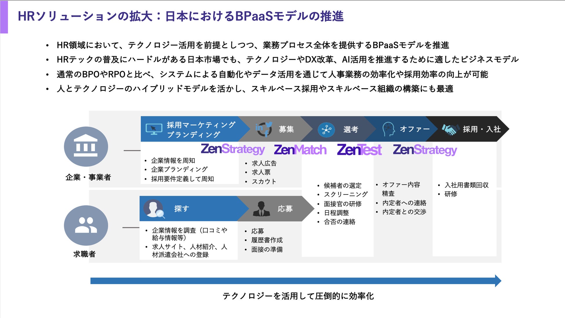 今後の展望 : ZenXは今後も、テクノロジーとデータを駆使した採用支援サービスを拡充し、企業の成長と人材の最適配置に貢献してまいります。人材に関わるすべてのプロセスを一括してサポートし、採用効率の向上と柔軟な働き方を実現するためのパートナーとして活動してまいります。