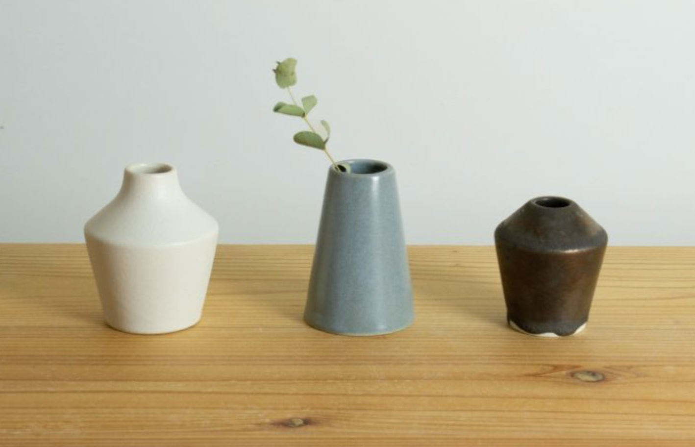 かもしか道具店の新ブランド「かもしか花卉店」の花器シリーズ。食卓に馴染むシンプルなデザインを取り揃えています。