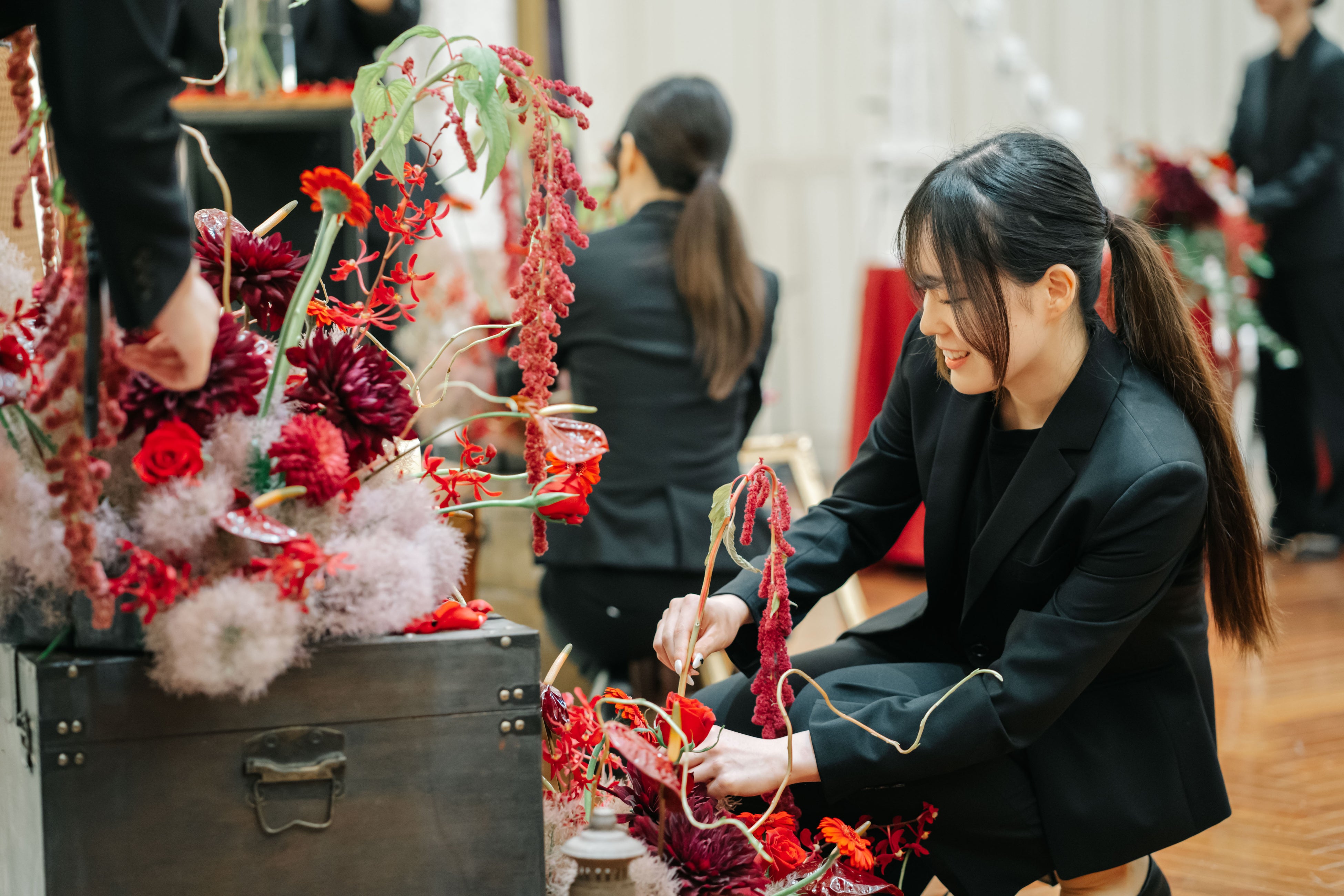 名古屋ウェディング&ブライダル専門学校の学生たちによる歓迎ゲートで皆様をお迎えします。ウェディングプランナー、ブライダルコーディネーターを育成する愛知県で唯一の花の専門学校です。若い個性あふれる創造性の高い作品で皆さんを魅了します。