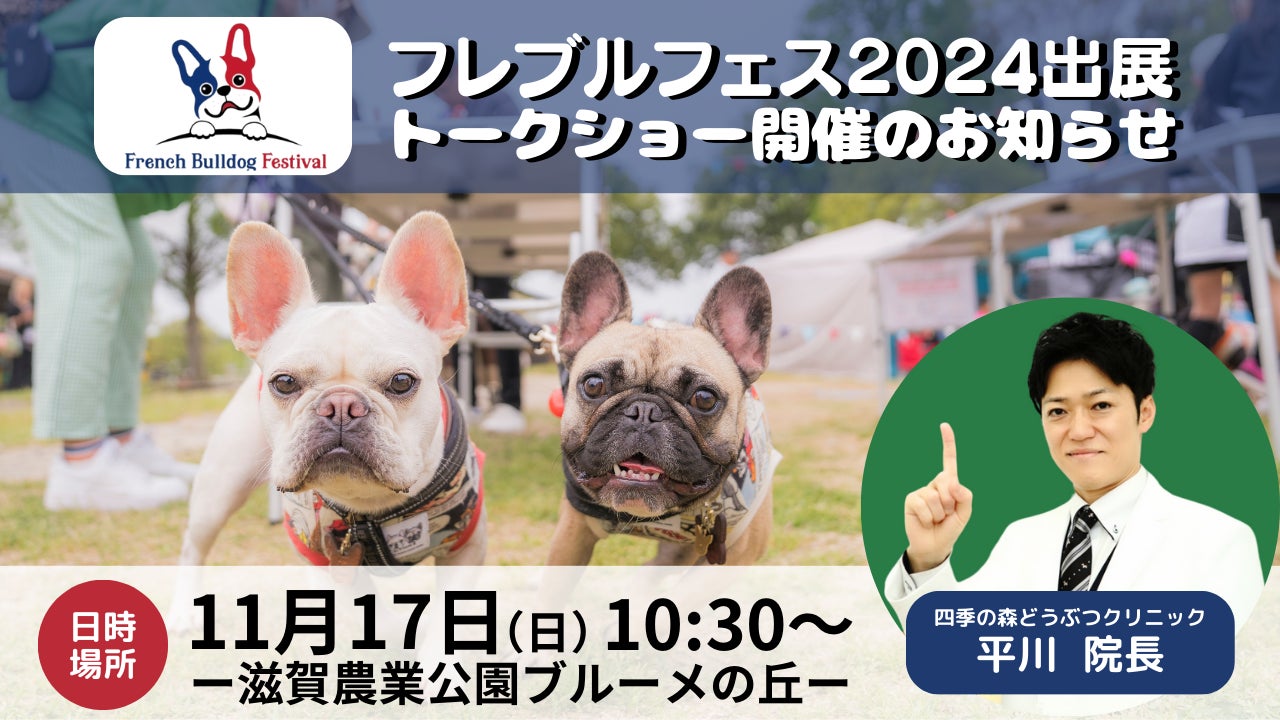 犬の皮膚病治療に特化した動物病院、四季の森どうぶつクリニックメディカルスキンケアセンター(本社:〒470-1154 愛知県豊明市/医院長・獣医師 平川 将人)は、2024年11月17日(日) 滋賀県蒲生郡にある滋賀農業公園ブルーメの丘にて開催される、フレブルの祭典『フレブルフェス2024にて出展、トークショーへ登壇致します。