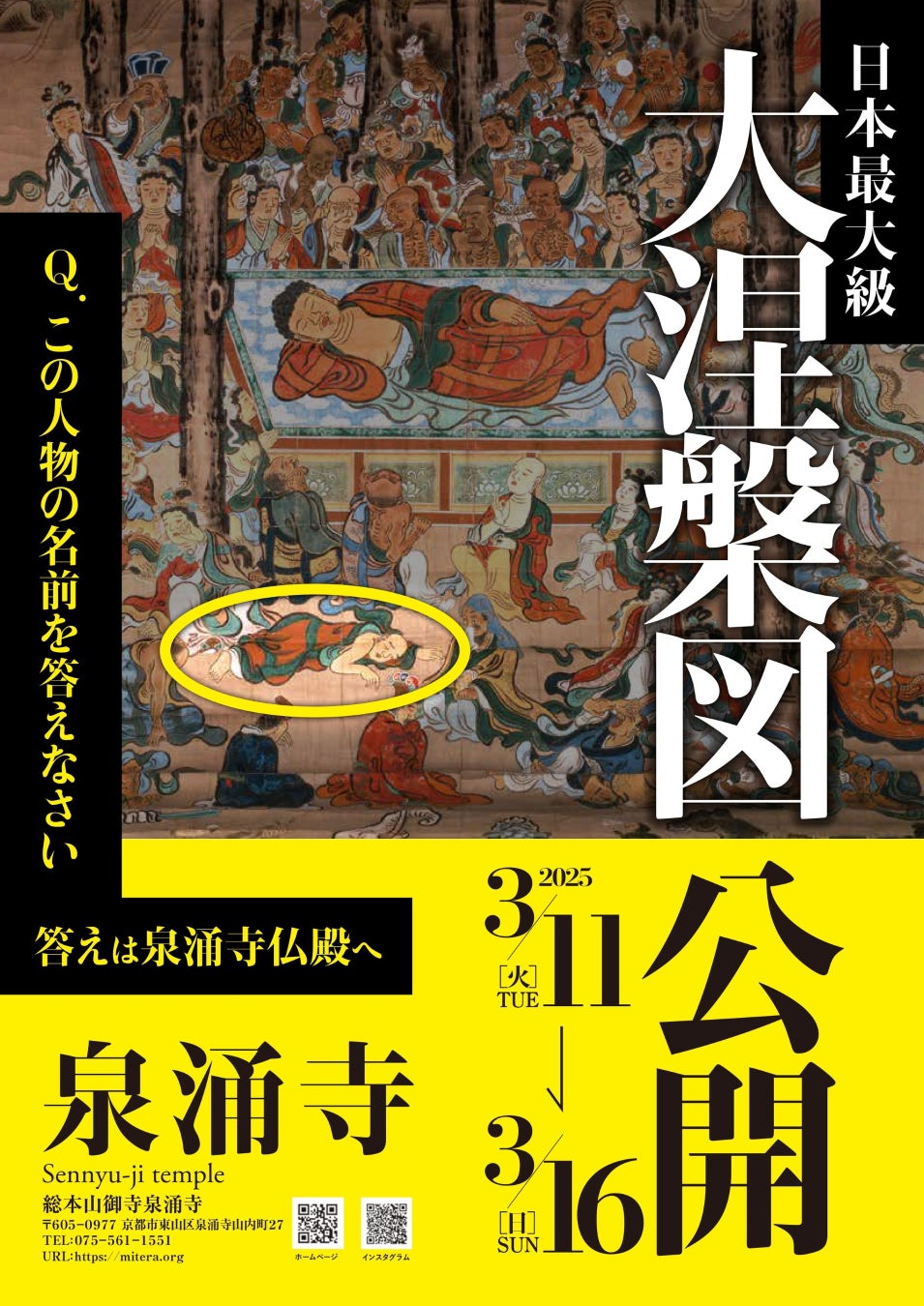 皇室の菩提寺・御寺(みてら)泉涌寺より、大涅槃図公開のお知らせ