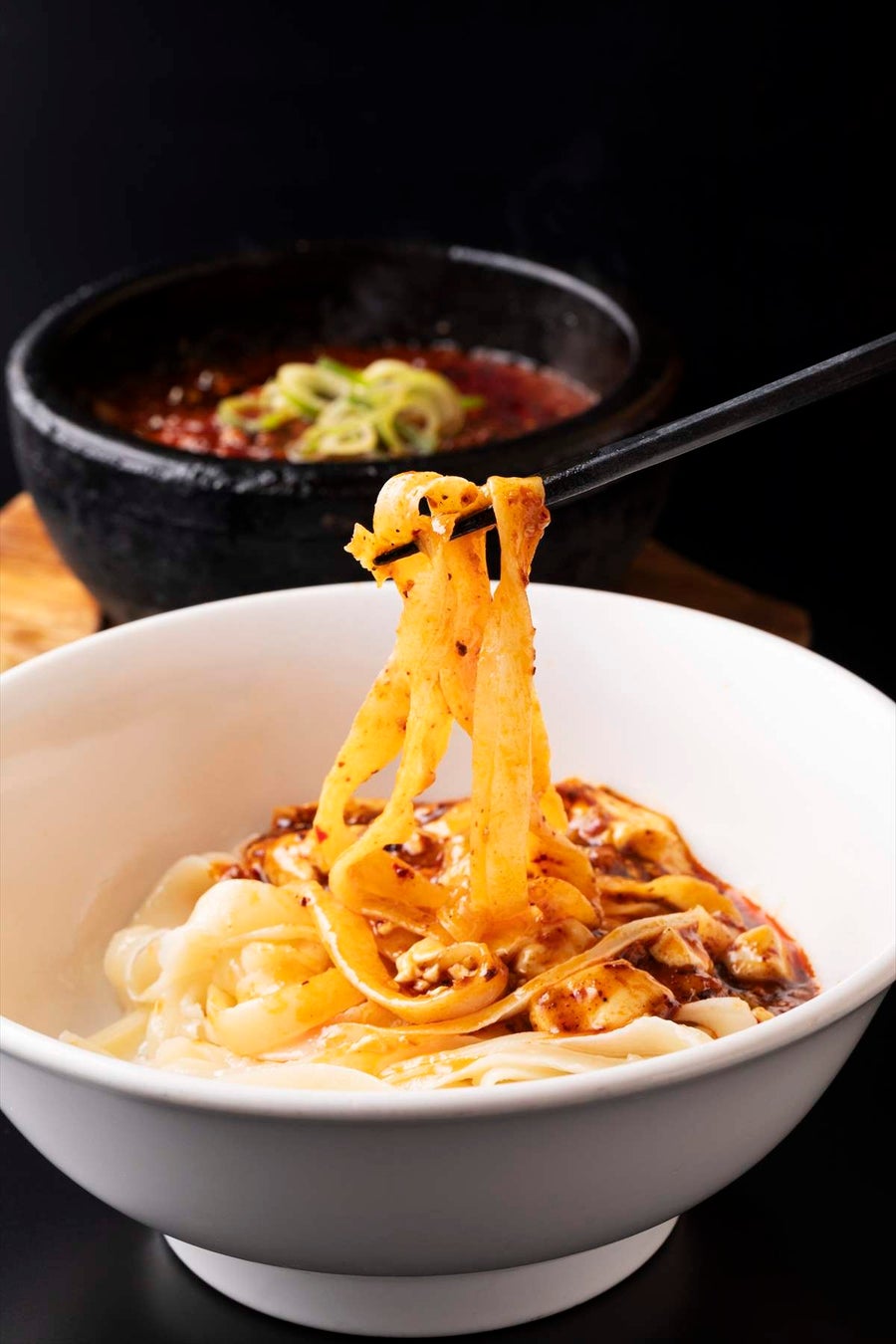 ──頂天石焼麻婆豆腐と麻辣刀削麺を融合させた斬新なつけ麺スタイル。お客様の声をきっかけに誕生し、石鍋の熱で仕上げることで、より深いコクと香りが楽しめます。