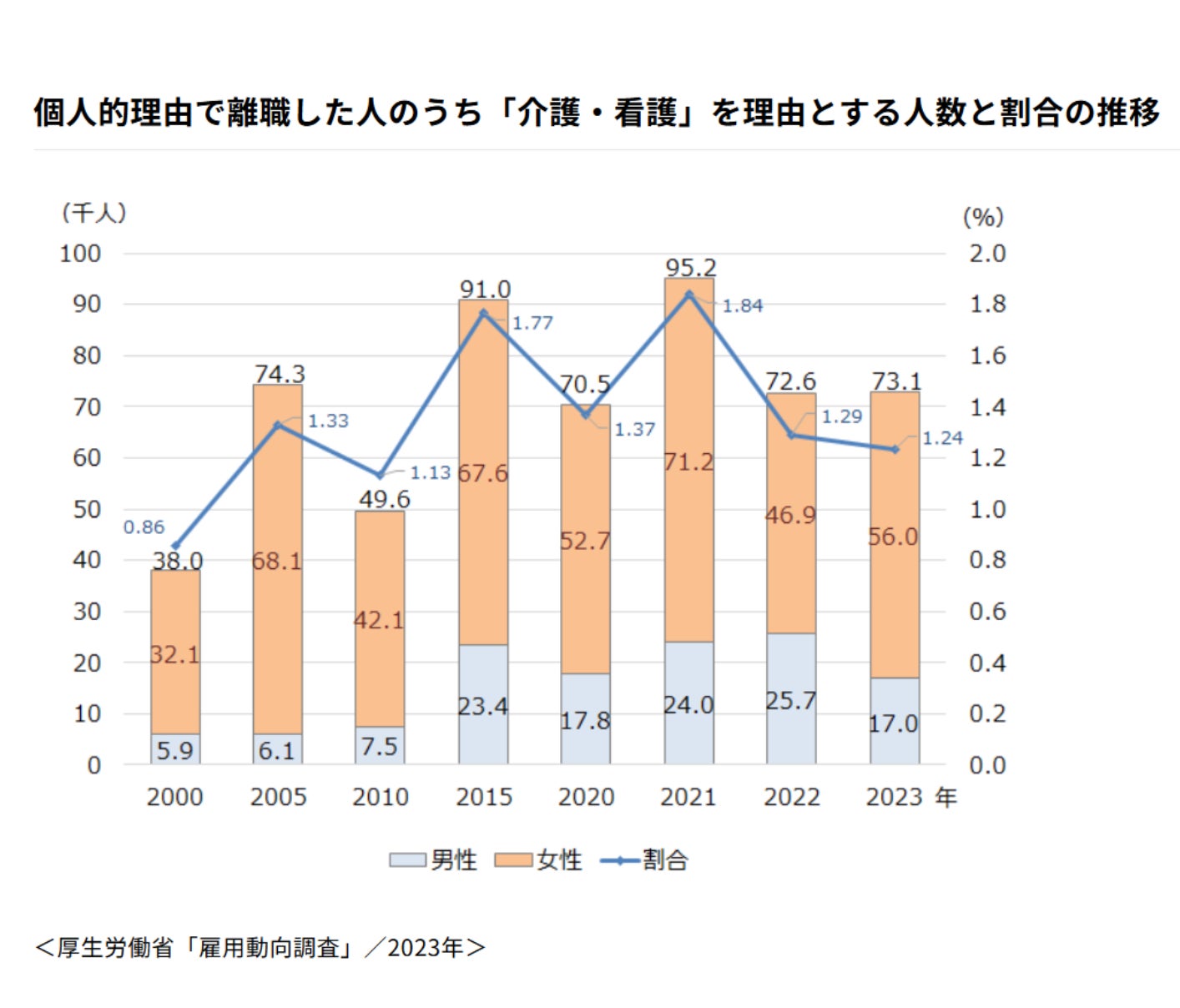 また、離職理由の一つに介護や看護を挙げる方の割合が多いことも分かります。