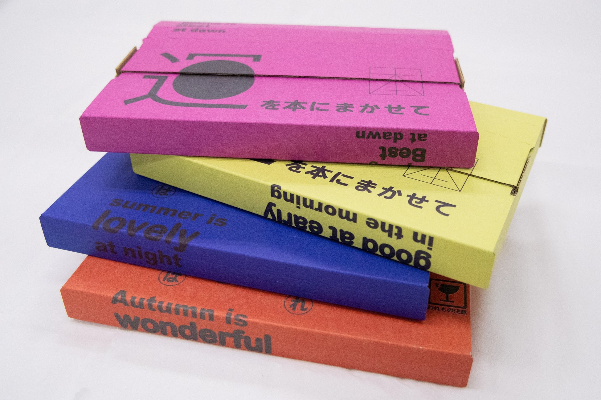 「御神籤ブック 春夏秋冬」は各季節に1冊、年に4回御神籤ブック春夏秋冬verが届きます。春・夏・秋・冬それぞれの封筒のタイポグラフィは枕草子の有名な「春はあけぼの~」からインスパイアされています。それぞれの季節のイメージに合った文庫本(古本)をオリジナル封筒に入れてお届けしています。御神籤ブックが季節を告げて新たなシーズンのスタートを切る、そんな新しい読書習慣を始めませんか?