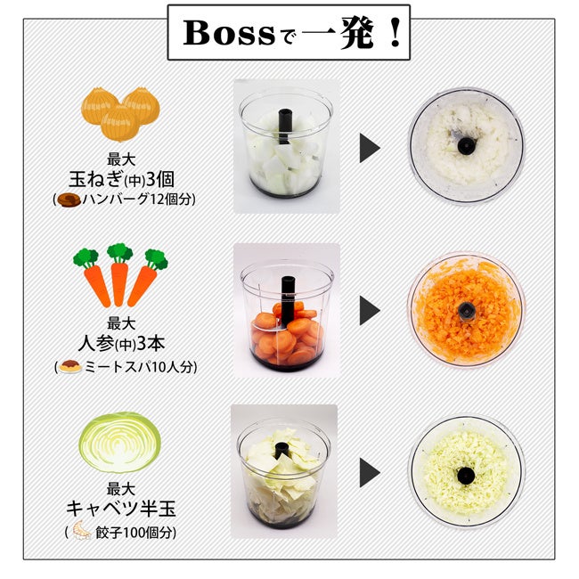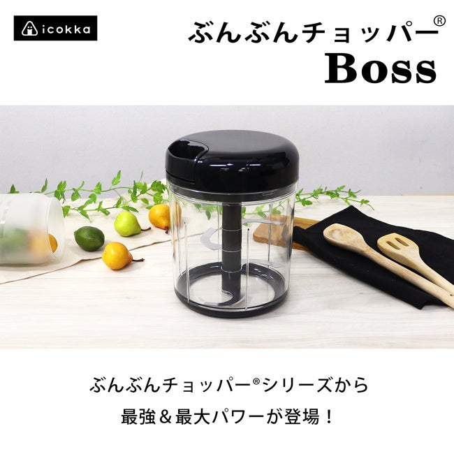 今回受賞した「ぶんぶんチョッパー®Boss」は紐を引くだけで簡単にみじん切りができる調理器具「ぶんぶんチョッパー®」のシリーズ最大容量の商品。