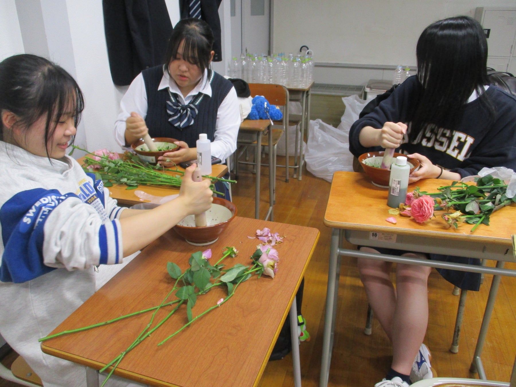 今回のSDGsイベントの主旨に賛同していただいた惺山高等学校(せいざん)の生徒の皆さんが、廃棄される花の収集から絵の具作り、さらにはイベント名のネーミングやイベント当日の運営サポートまで協力してくれました。