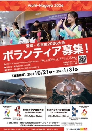 大会組織委員会・愛知県・名古屋市では、2026年に開催する愛知・名古屋2026大会を一緒に盛り上げていただけるボランティアを募集しています!