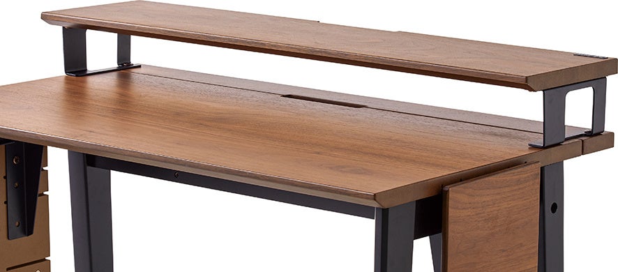 天板と脚はエッジを効かせスッキリとした印象をあたえるデザインで、天板などの主材質には、ホワイトオーク突板(ナチュラル色)、ウォールナット突板(ブラウン色)を使用しリビングや書斎のインテリアにも合わせやすい2タイプのカラーをラインナップしています。