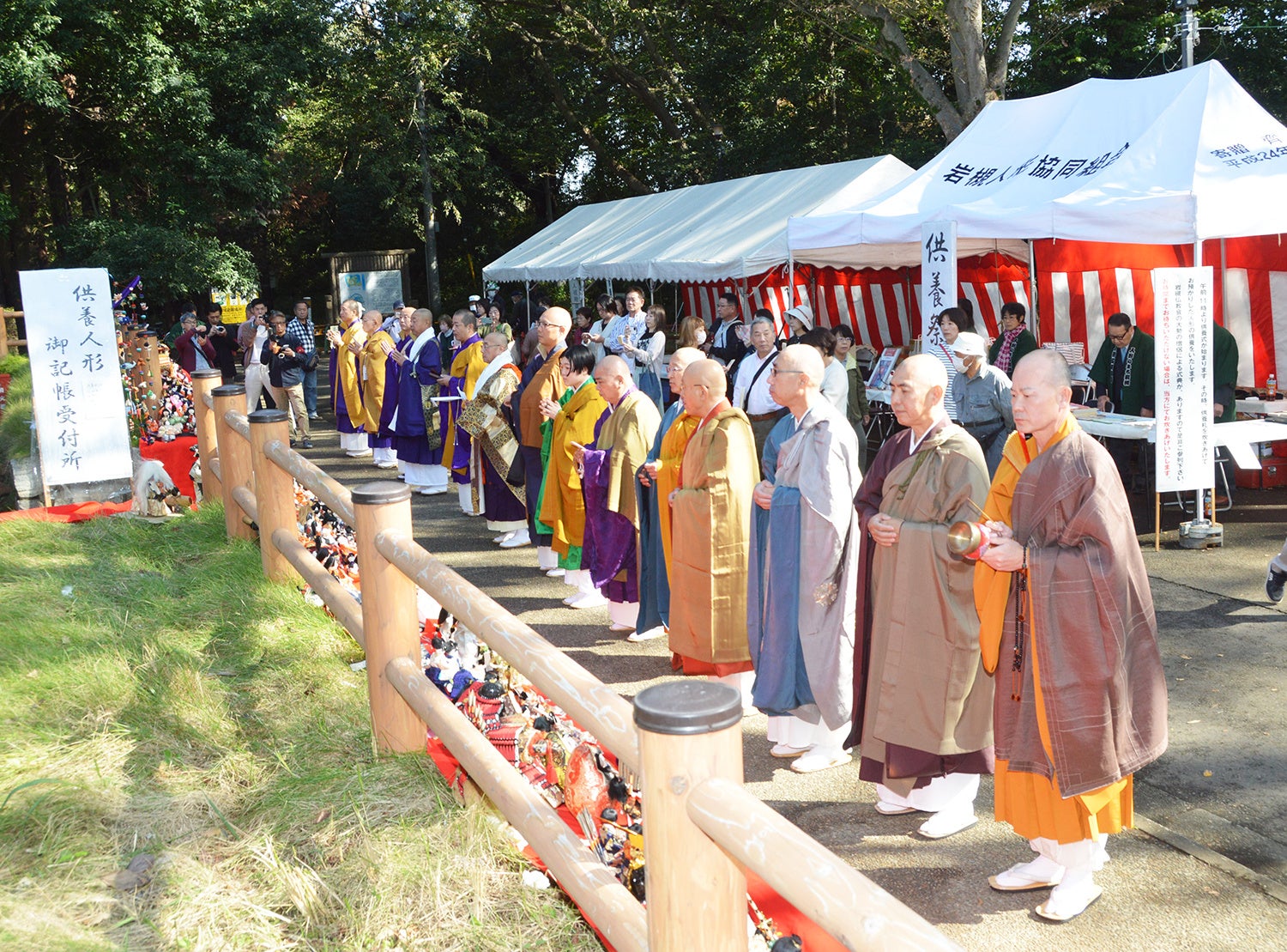 古くなって飾らなくなったり、壊れてしまったりした「捨てるに忍びない」人形を、僧侶の読経の下、参加者が焼香し、冥福を祈り供養する同イベント。「人形のまち岩槻」で毎年11月3日(祝)に開催され、今年で61回目になる伝統行事です。