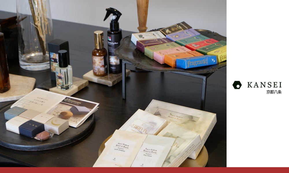 京都駅より徒歩6分の立地で、今後アートな区画に進化する予定の東南部にKANSEI京都八条は位置します。KANSEIは五感を刺激し、心地よく自分と向き合える時間を提供する場所です。京都八条では「香り」をテーマに「香りで巡る和ごころの旅」をコンセプトとし、香りを纏う特別な時間と空間。心と身体の調和を感じる京都の新たな体験と、自身の本来の感性を嗅覚を通して理解いただくコンテンツをご用意しております。
