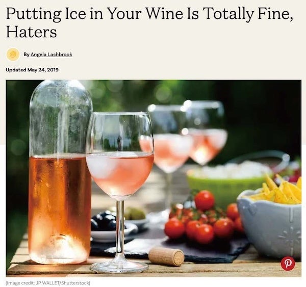 ワインに氷を入れるのは全く問題ありません (出典) https://www.thekitchn.com/ice-wine-is-acceptable-259966