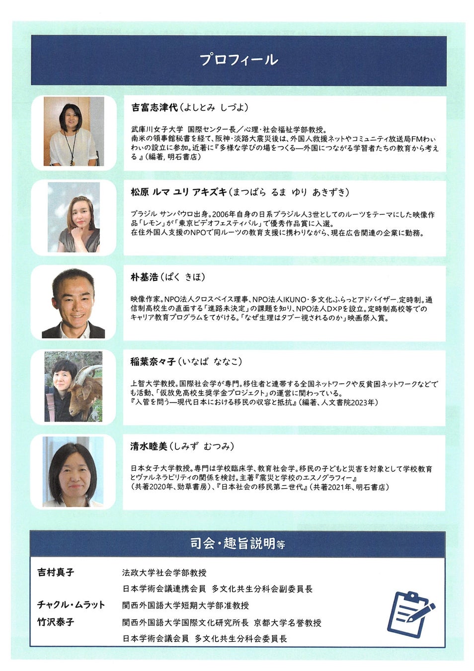 1995年1月17日に起きた阪神・淡路大震災では、多くの被災外国人への支援活動や互いに助け合う姿が見られました。以来30年、「多文化共生」という言葉は全国に広がりました。今回のシンポジウムでは、外国ルーツの若者たちの進路、特に大学進学に焦点を当て、この30年間で何を達成し、何が課題として残っているかを考えます。オンライン配信もあります。プログラムは以下の通りです。