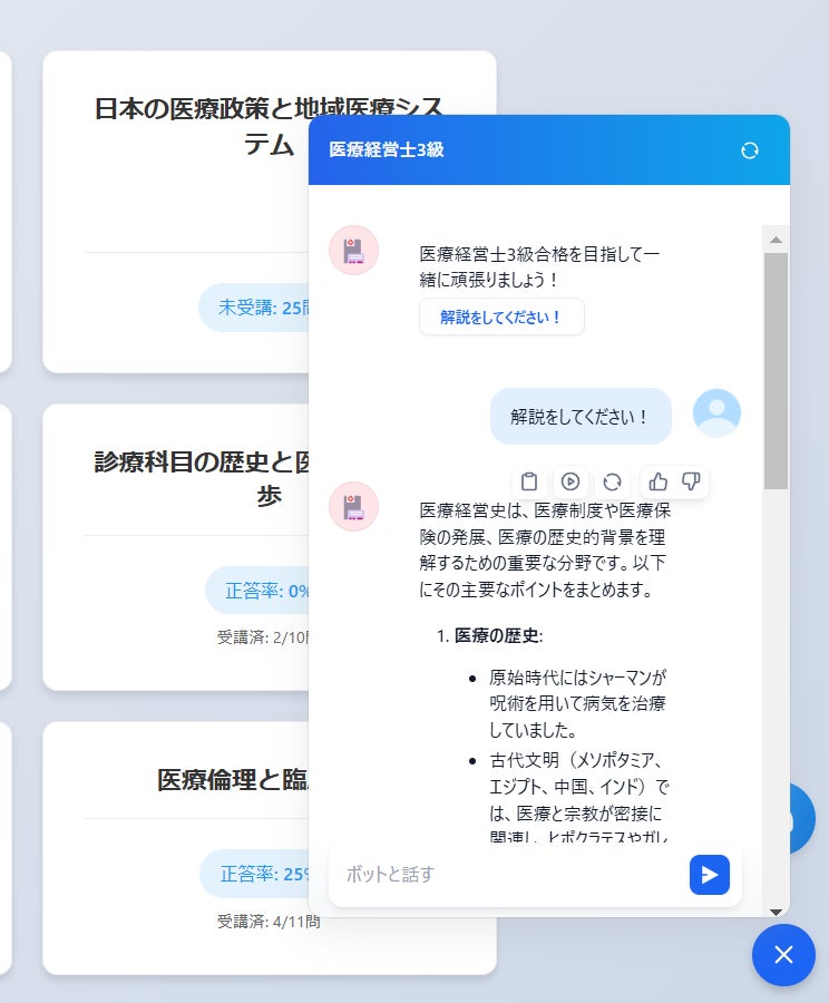 生成AI搭載の医療経営士3級 学習ポータルサイトをリリース